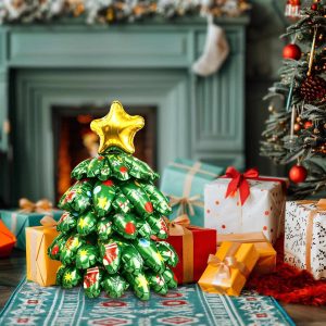 3D Karácsonyi lufi – 360° – alumínium fólia – fenyőfa – 38 x 34 cm Family 58968