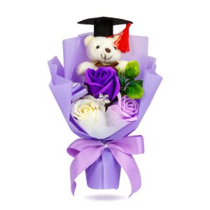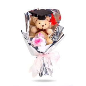 Műnövény dekoráció – rózsa, macival – 14 x 10,5 x 26 cm 11973