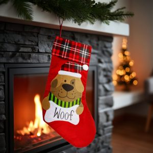 Karácsonyi mikuláscsizma – kutya – piros – 42 x 24 cm 59756B