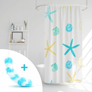 Zuhanyfüggöny szett fürdőpamaccsal – 3 féle – kék, zöld mintás – 180 x 180 cm Family 11526A