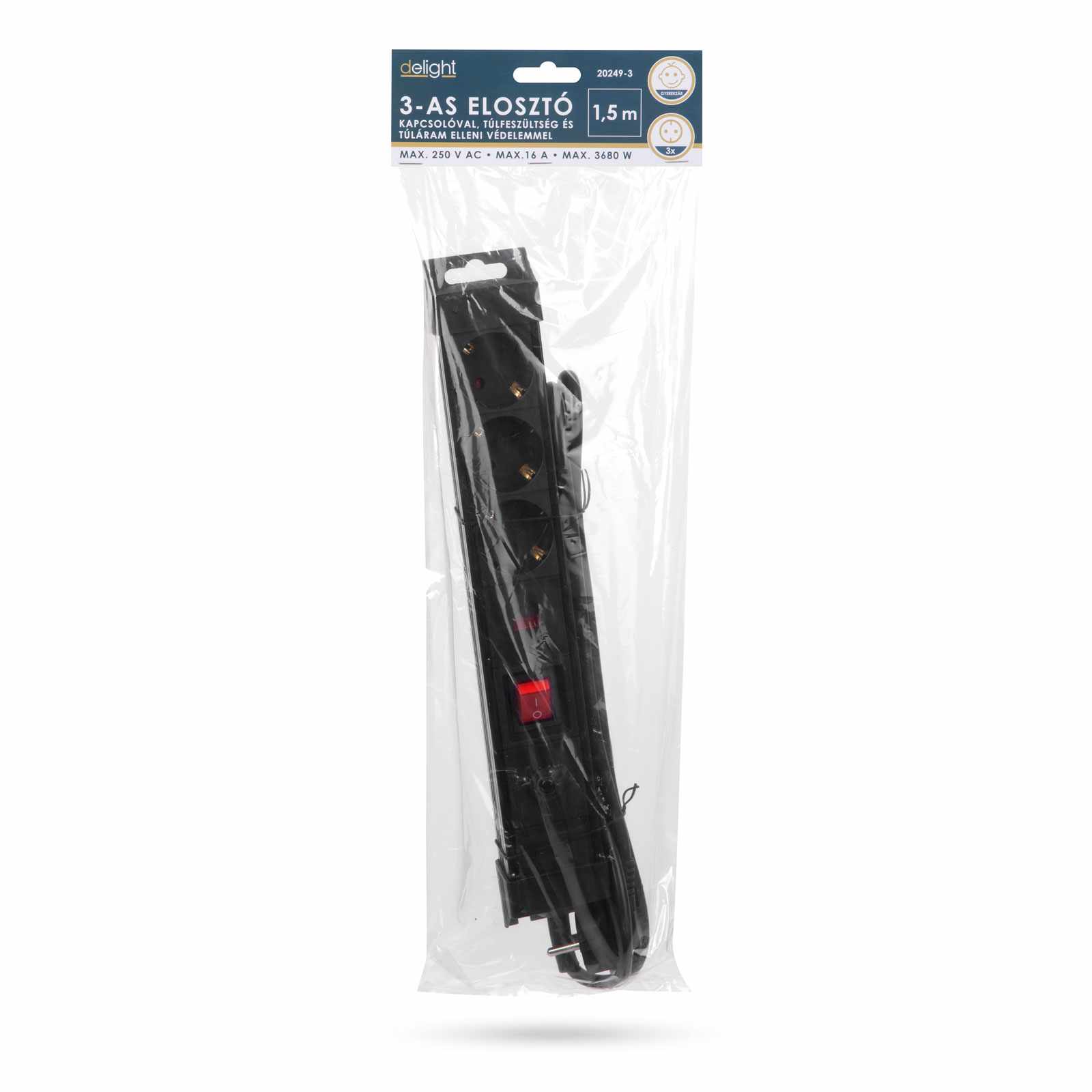 3-as elosztó túlfesz. és túláram elleni védelemmel Delight 20249-3