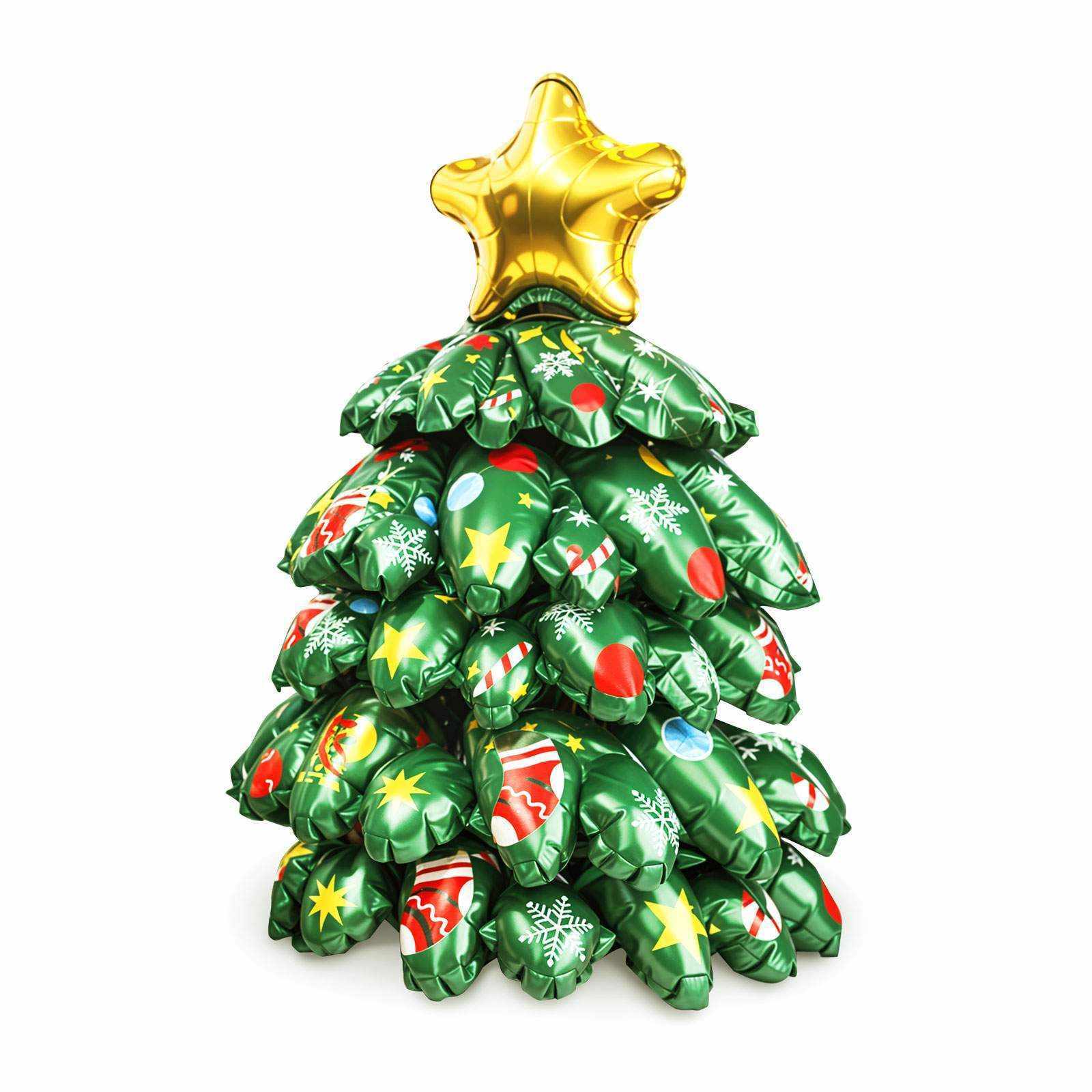 Egyetlen karácsonyi dekorációból sem maradhatnak ki a lufik! Ez a nagyméretű, alumínium fóliából készült karácsonyfa lufi kiváló ajándék gyermekeknek, de alkalmazható különböző helyiségek dekorálására is. A több lufiból összeállított karácsonyfa 360 fokban csodálatos vizuális élményt nyújt. A könnyű felfújhatóság érdekében felfújószállal a csomagban!