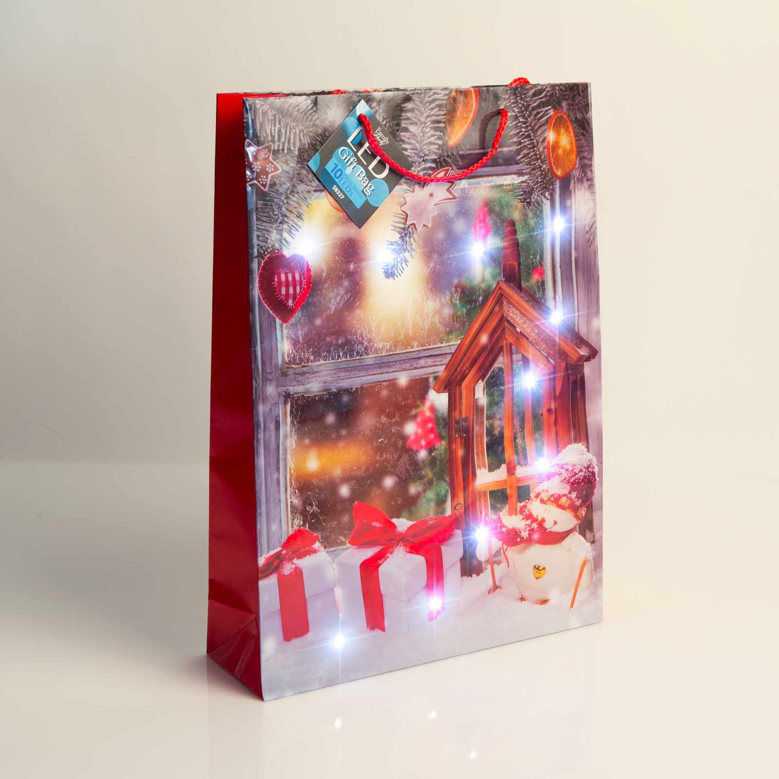 Az ajándéktasak oldalát különleges minta díszíti és kiváló minőségű papírból készült, hogy hosszútávon is tökéletesen szolgáljon. A tasakon elhelyezett LED-ek különleges hangulatot teremtenek, melyek energiájáról a beépített elemek gondoskodnak.