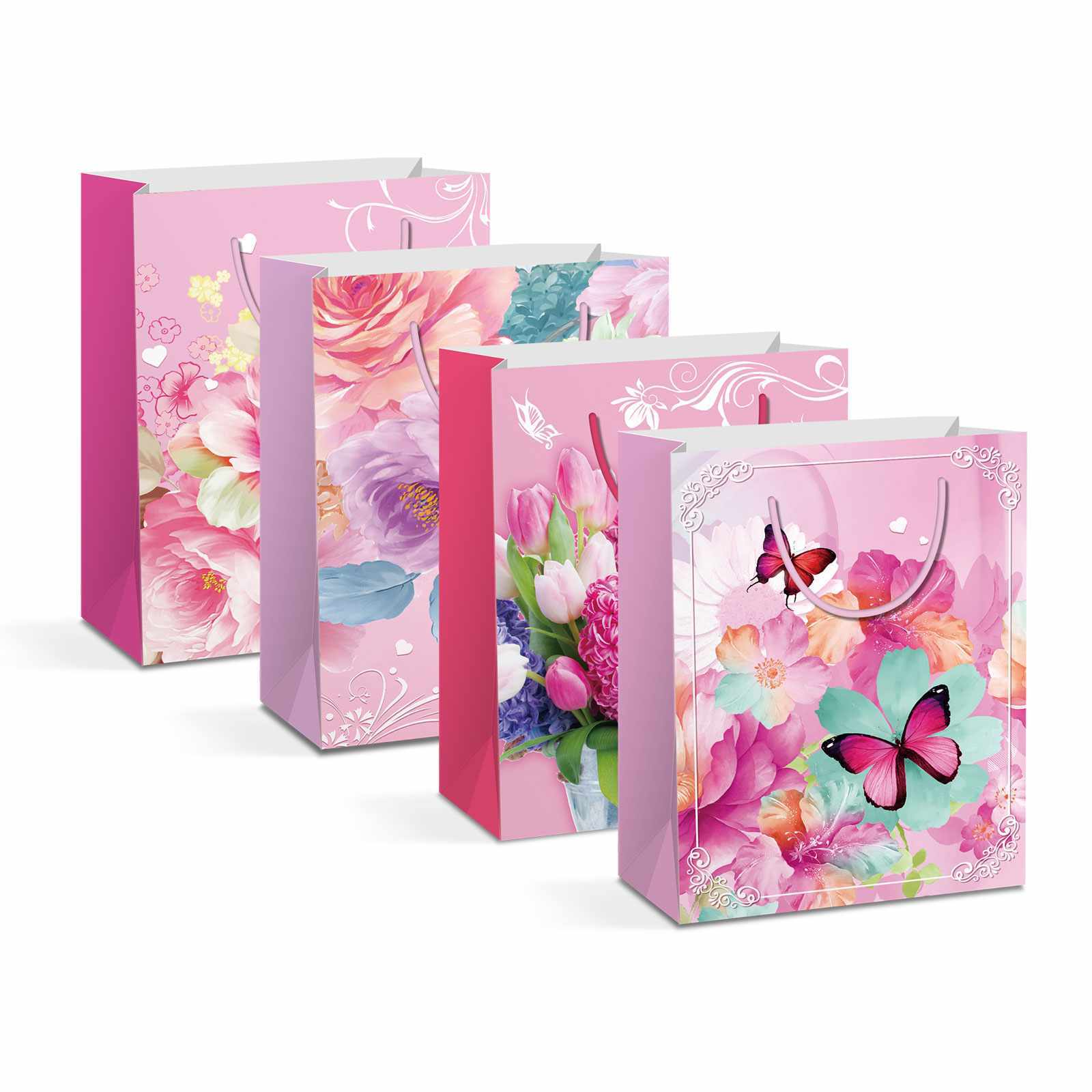 Ajándéktasak – papír – 330 x 102 x 457 mm – 4 féle / csomag – 12 db / csomag