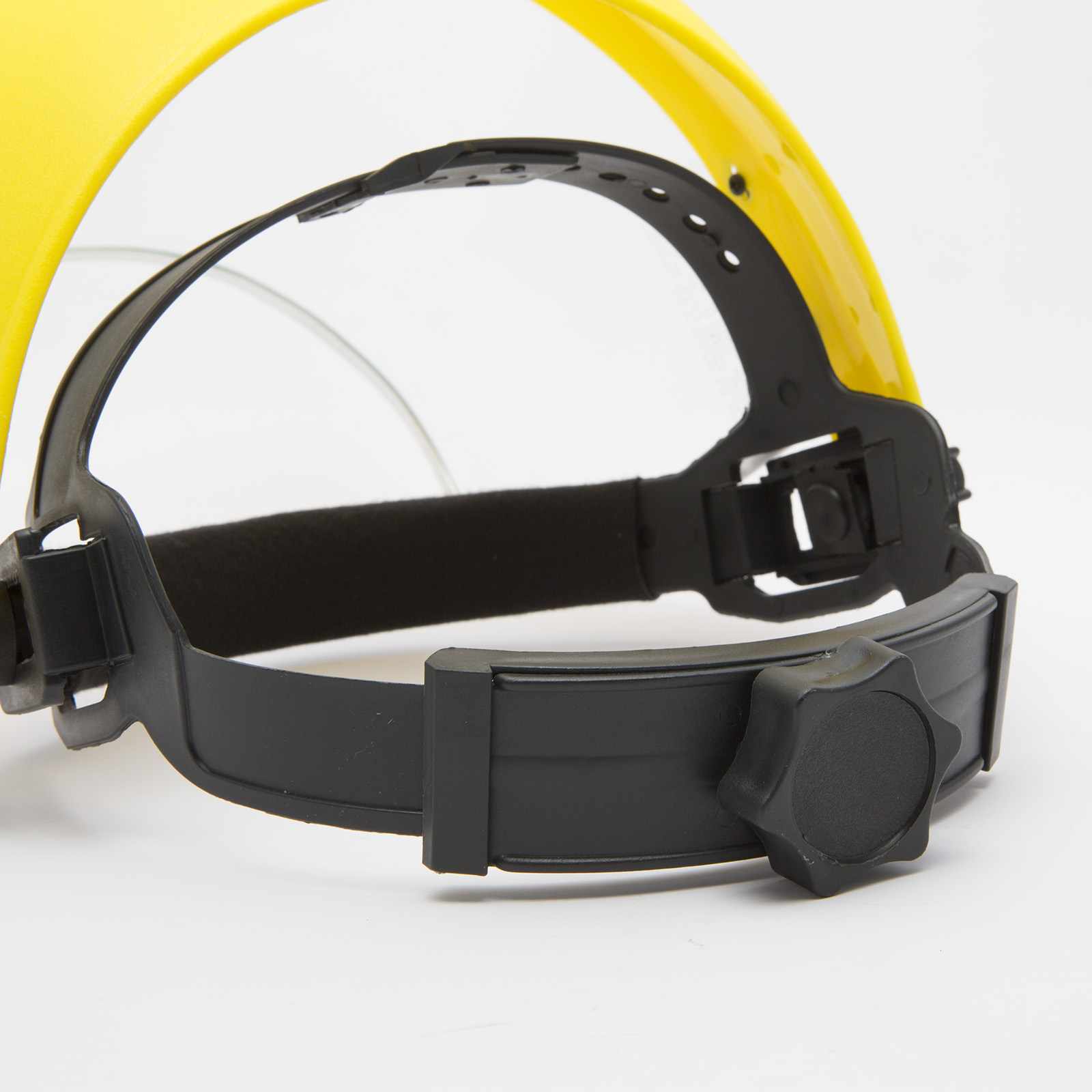 Egész arcot védő, fejpántos, víztiszta plexi pajzs. Használja, hogy védje az arcot és a szemeket például folyadék fröccsenéstől. Véd szikrák ellen köszörülés közben vagy más tevékenységeknél, ahol szükség van a teljes arcvédelemre.