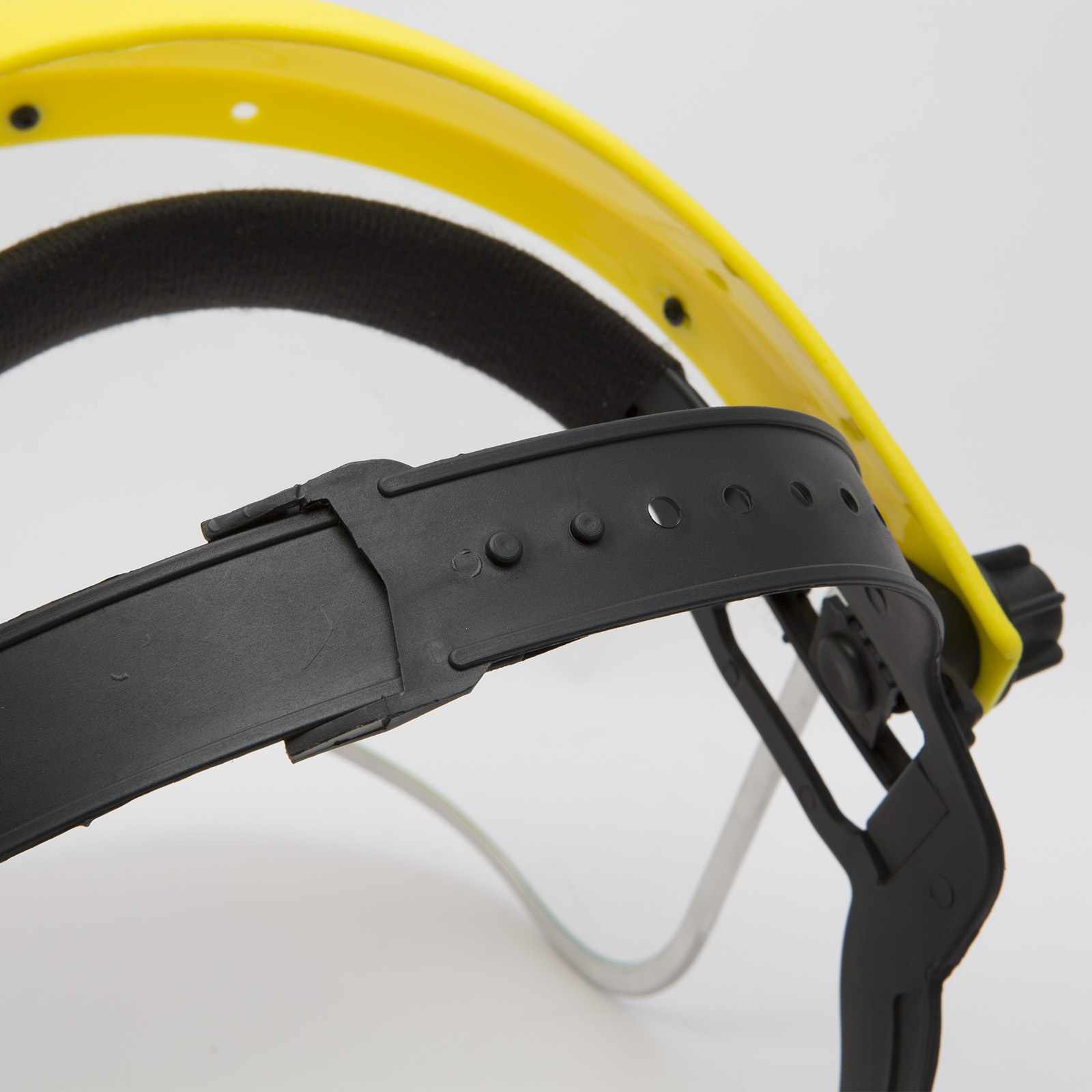 A homlokpánt ütésálló polipropilénből készült. A karima kapcsoló rendszere állítható, könnyen kezelhető. A cserélhető víztiszta látómező anyaga plexi (poli-metil-metakrilát).