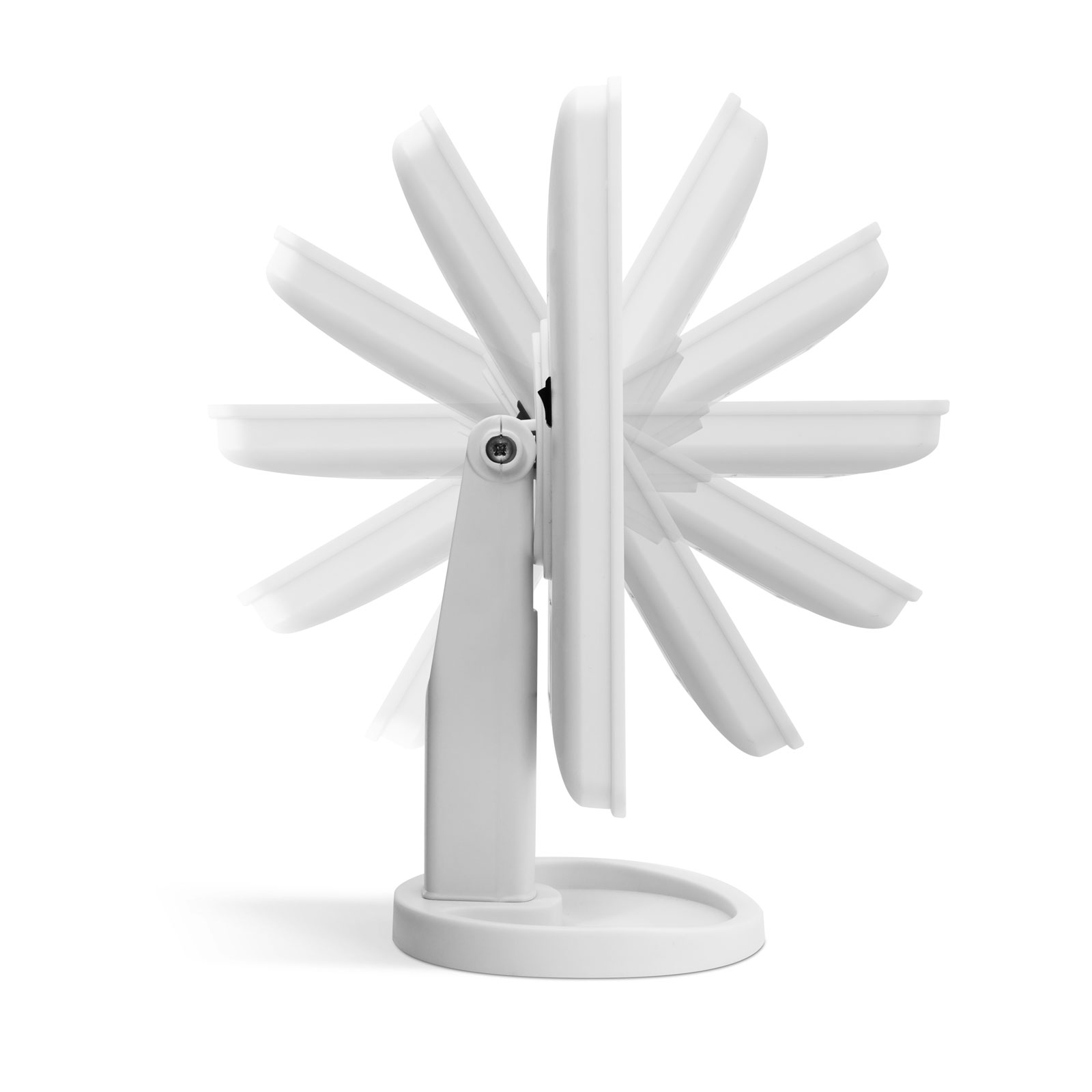 16 db beépített LED-del rendelkező sminktükör, amely energiatakarékos, elemes működéssel rendelkezik. A tükör két szélén található fény egyenletesen világítja meg az arc minden pontját, így könnyítve meg a kozmetikai folyamatokat. A kábelmentes használat lehetővé teszi, hogy bárhol használja a terméket, nincs áramforráshoz kötve. Az tükör alsó részén található érintőgombnak köszönhetően egy mozdulattal be -és kikapcsolhatja a fényeket.