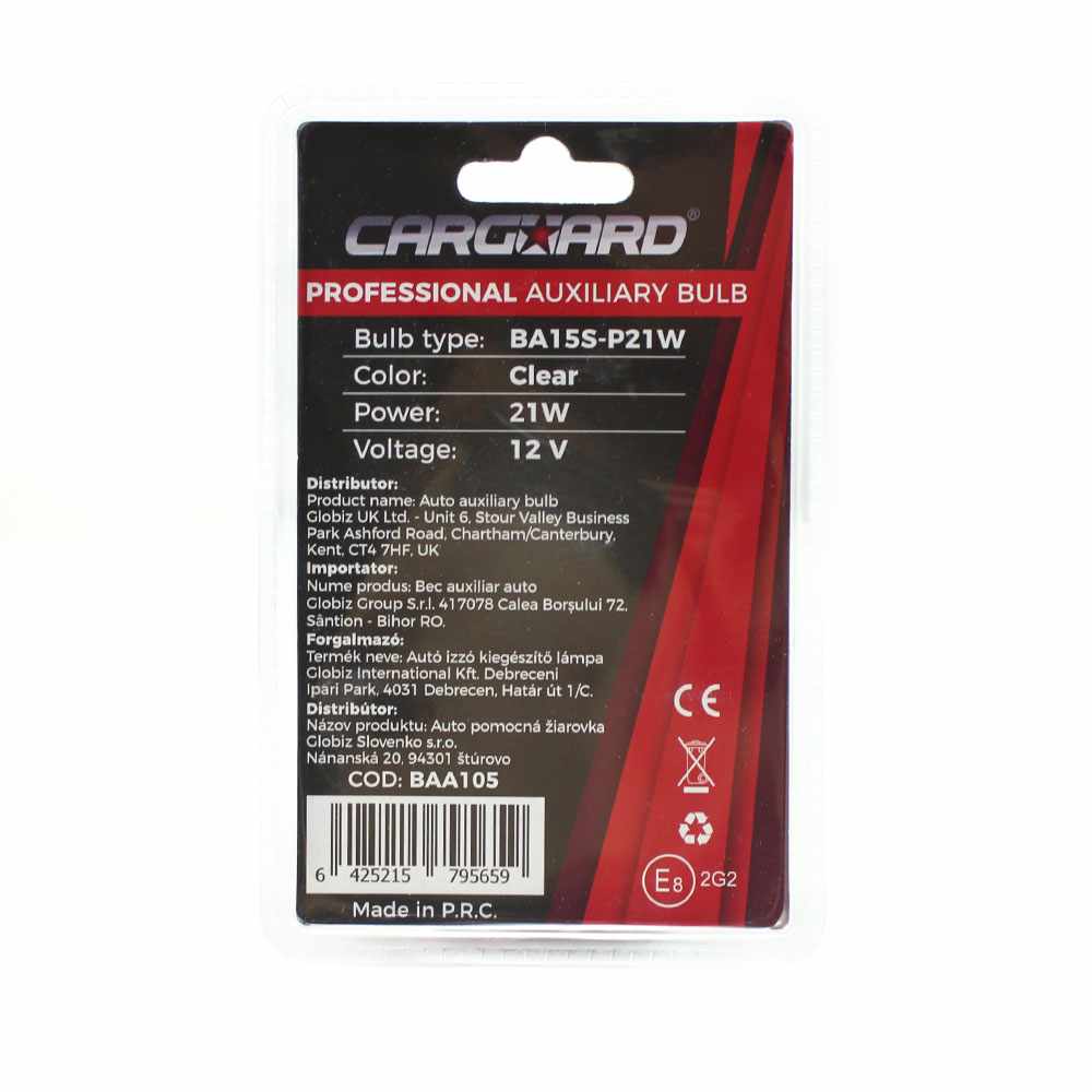 Autós féklámpa izzó – BAA105 BA12S-P21W – 12V – 2 db / bliszter Carguard 50804