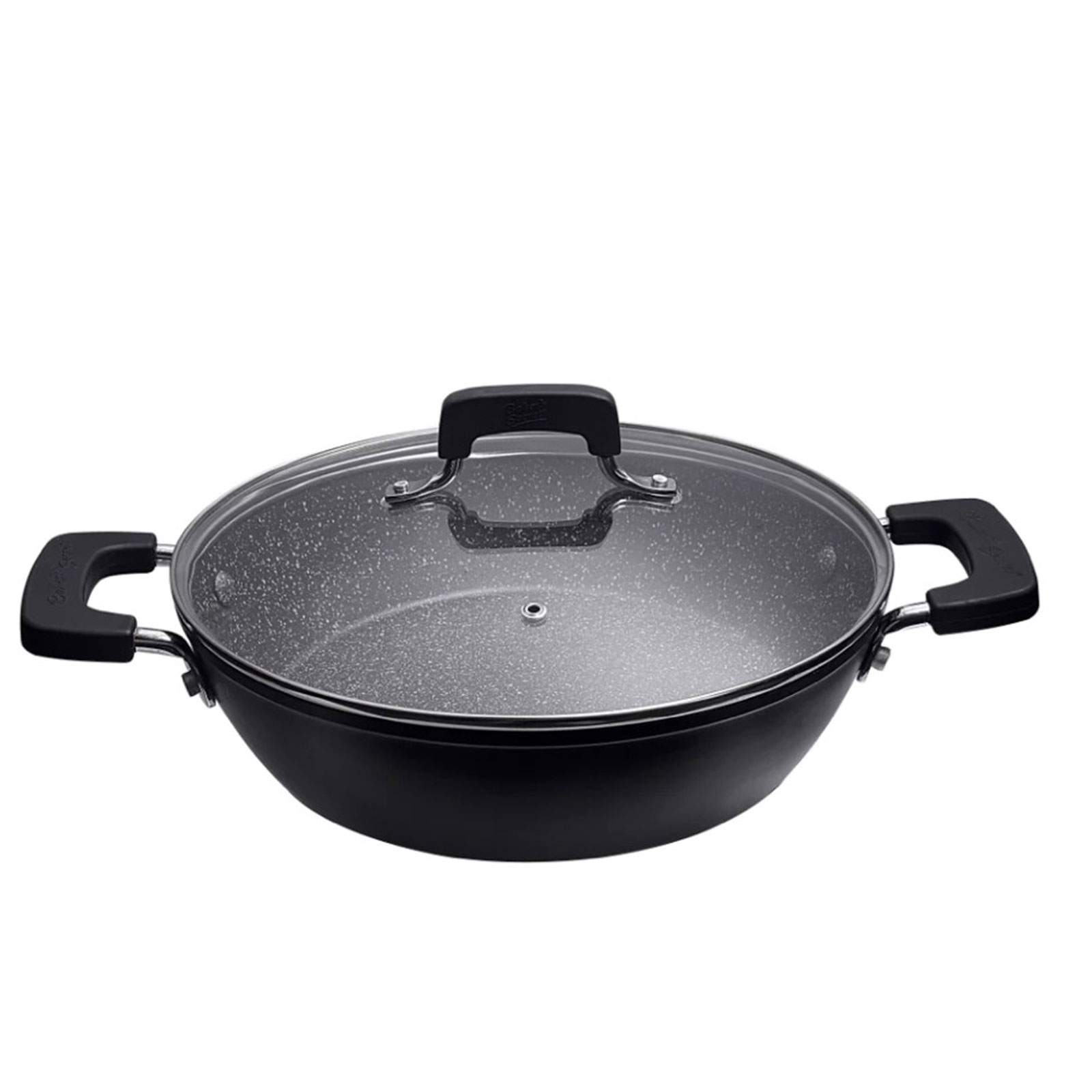 Ez a sokoldalú serpenyő kiváló minőségű alumíniumból készült, amely nemcsak tartósságot és korrózióállóságot biztosít, hanem könnyű kezelhetőséget is garantál. A serpenyő tapadásmentes tulajdonságai lehetővé teszik az egészséges és ízletes ételek készítését. Káros anyagoktól mentes, így biztos lehet abban, hogy az ételek elkészítése során nem kerülnek káros anyagok az ételekbe. Legyen szó mindennapi főzésről vagy különleges alkalmakról, ez a tapadásmentes serpenyő minden konyhában elengedhetetlen kellék! Fedezze fel a könnyű és egészséges főzés új dimenzióját ezzel a kiváló minőségű serpenyővel, amely tökéletes választás minden szakács számára!