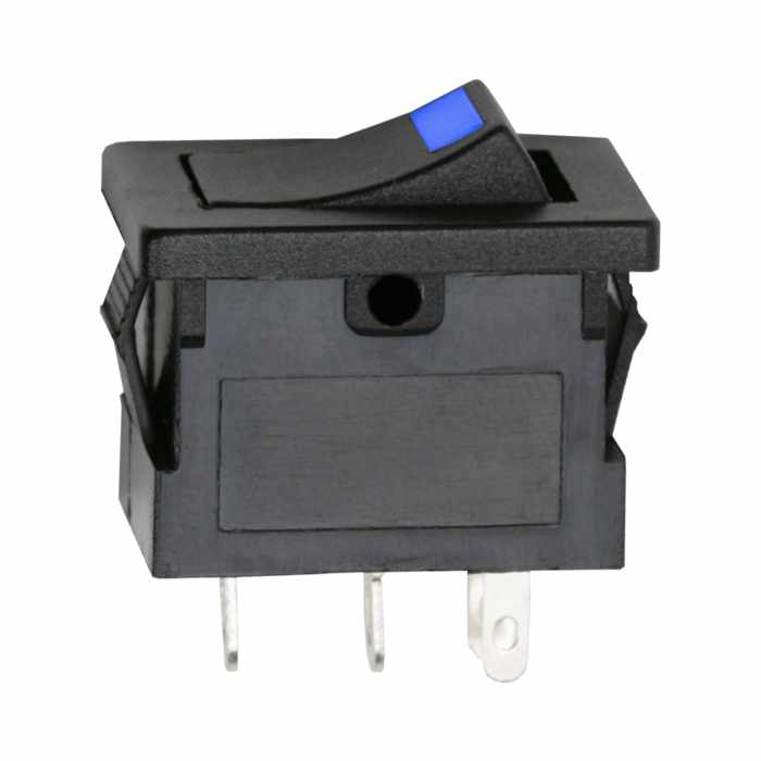 Beépíthető fekete billenőkapcsoló, amely kék LED fénnyel jelzi a bekapcsolt állapot, így távolról is könnyedén ellenőrizhető a státusz. Széles körben alkalmazható, elektromos berendezések, járművek kezelőfelületén.