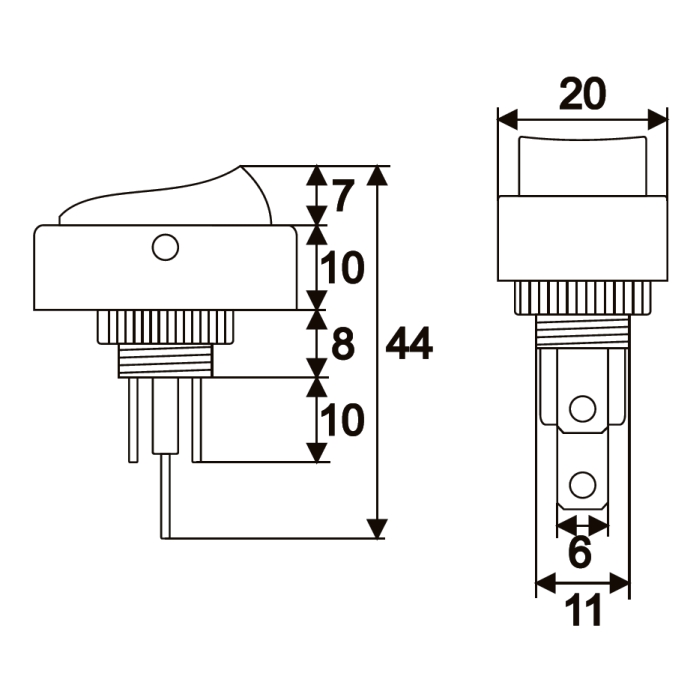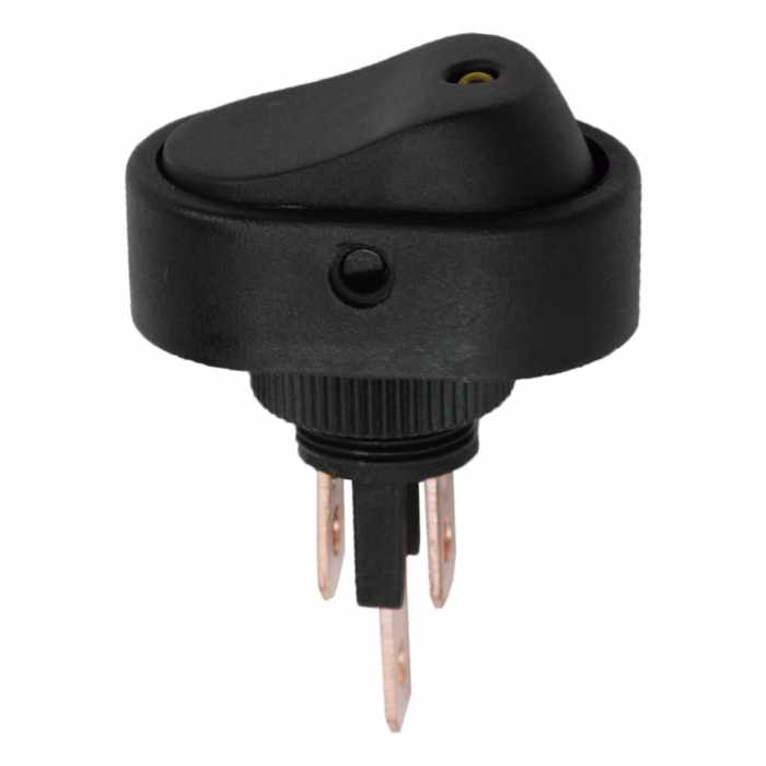 Beépíthető fekete billenőkapcsoló leddel. Széles körben használt, ideális lehet autóban, elektromos eszközök kezelőpanelján. A visszajelző lednek köszönhetően könnyen megállapítható a kapcsoló státusza.