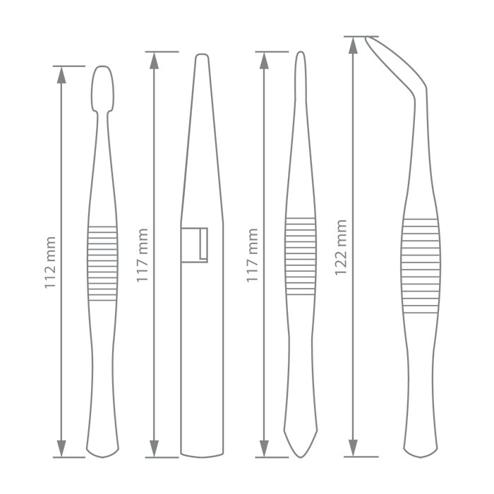 Rozsdamentes acél csipesz szett csúszásmentesítő bordázással. Ajánljuk labormunkák, órás munkák, barkács, modellezés, bélyeg vagy ékszerészeti, elektronikai, szépségipari stb. célú felhasználásra.