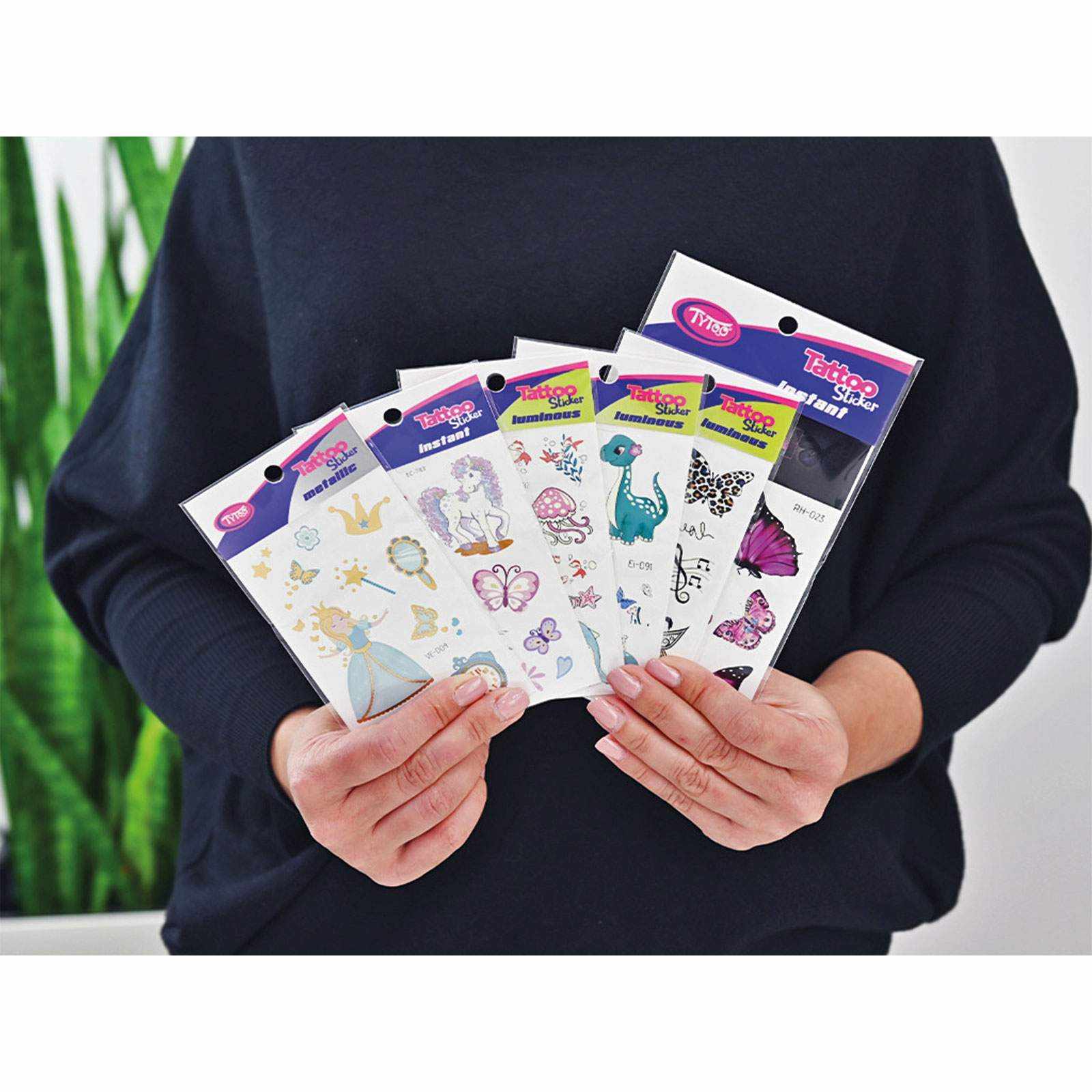 Minden ami cukiság! Könnyen felvihető, egyszerű és látványos tetkók, a legaranyosabb mintákkal, szettben. A hercegnők kedvence! Ezek az ideiglenes tetoválás matricák kiváló minőségűek, így hosszabb ideig, napokig is megőrzik élénk színüket és részletgazdagságukat. Könnyen felhelyezhetőek és eltávolíthatóak, anélkül hogy irritálnák vagy károsítanák a bőrt. 47 db aranyos matrica tetoválás 6 db íven Delfin, tiarás dínók, hercegnők, hableányok, és Pónik. Minden, ami cukiság!