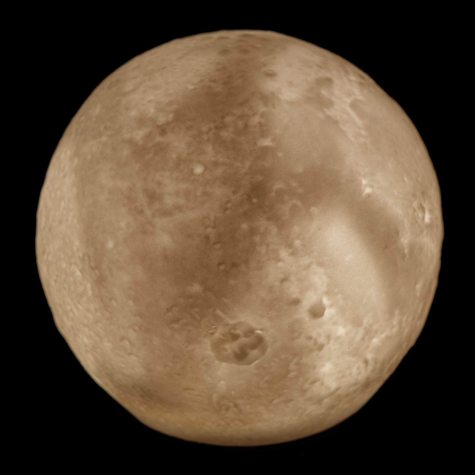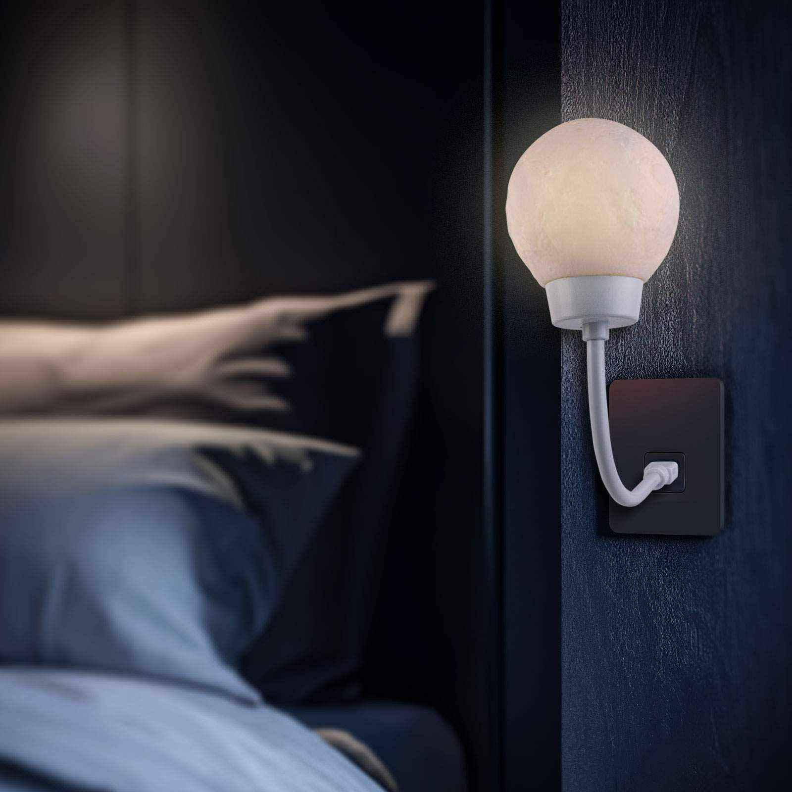 Kiváló dekorációs lámpa, amely a Hold felszínére emlékeztető sötétebb foltokkal tarkított felülettel rendelkezik. A belsejében lévő melegfehér LED nagy fényerővel világít, melynek energiaellátásáról USB csatlakozó gondoskodik. A szabvány csatlakozónak köszönhetően, bármilyen adapterbe, USB portba bedugható, így használható akár irányfényként is hálószobában, nappaliban közlekedő helyiségekben.