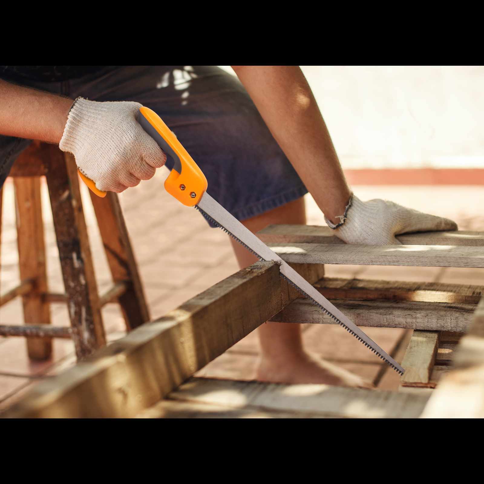 Nyitott, formatervezett markolattal szerelt kézifűrész, fafűrész. Gyors és pontos vágást biztosító rugalmas fűrészlappal és edzett fogakkal rendelkezik. Alkalmas mindenféle faanyag vágására.
