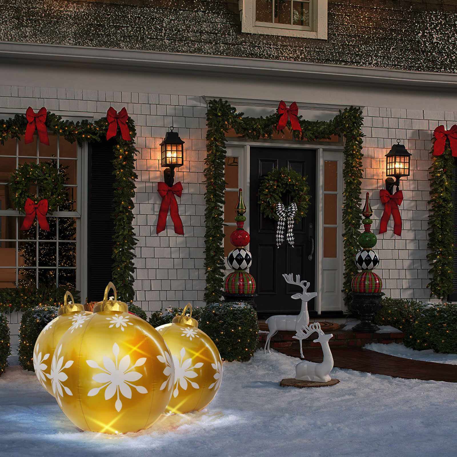 A karácsonyi időszak legújabb, innovatív dekoreszköze a felfújható, megvilágítható díszgömb. Nagy méretének köszönhetően elhelyezhető nagyobb kertekben is, fára akasztva vagy akár medence vízfelszínén is jól mutat. A díszgömb aljába rakható LED-es egység, csodálatos fénnyel világítja meg a gömb belsejét. A LED-ek energiaellátásáról 2 x CR2450 elem gondoskodik. Az Önnek tetsző világítási módot a tartozék távirányító segítségével állíthatja be.