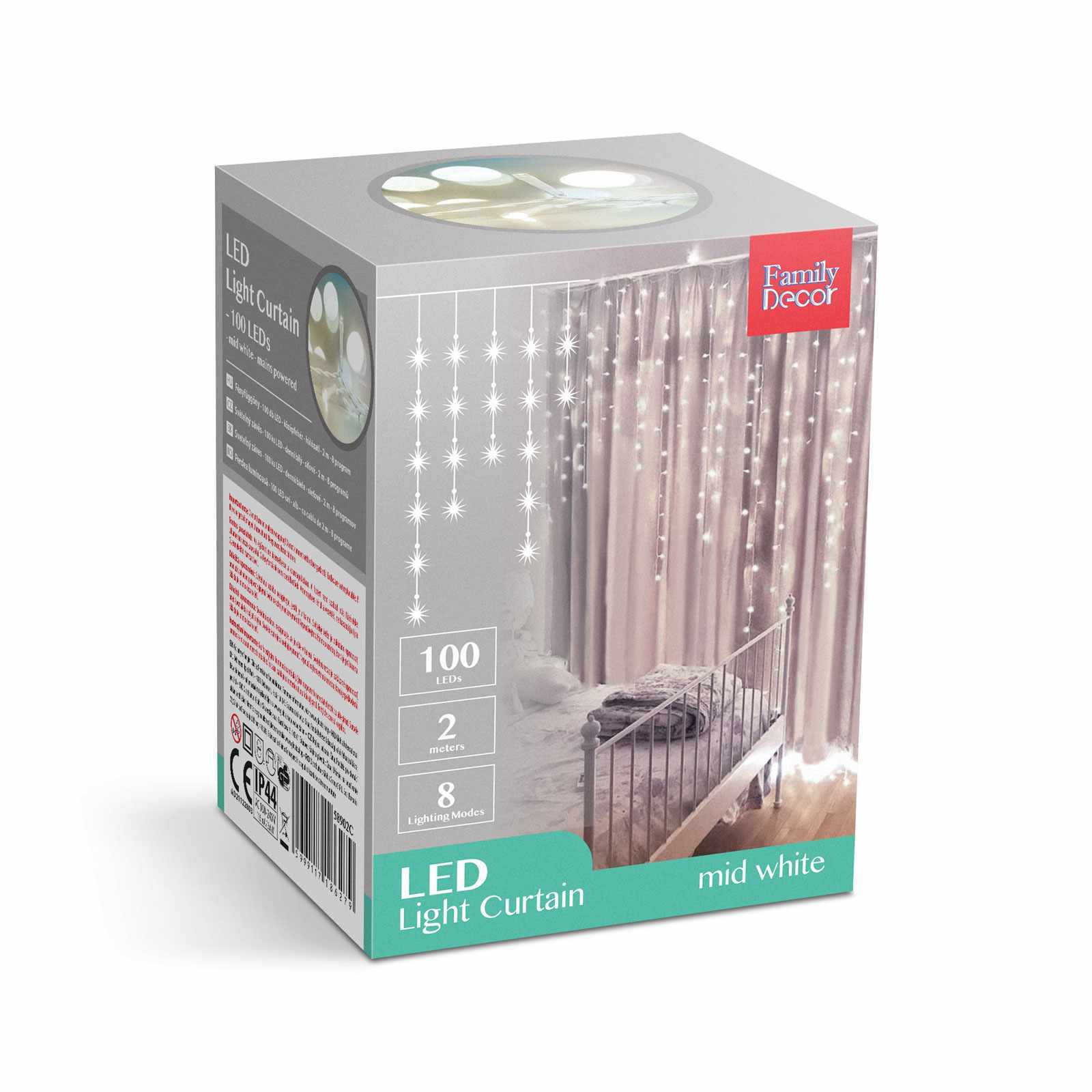Fényfüggöny – 100 db LED – középfehér – hálózati – IP44 – 2,2 m – 8 program Family 58902C