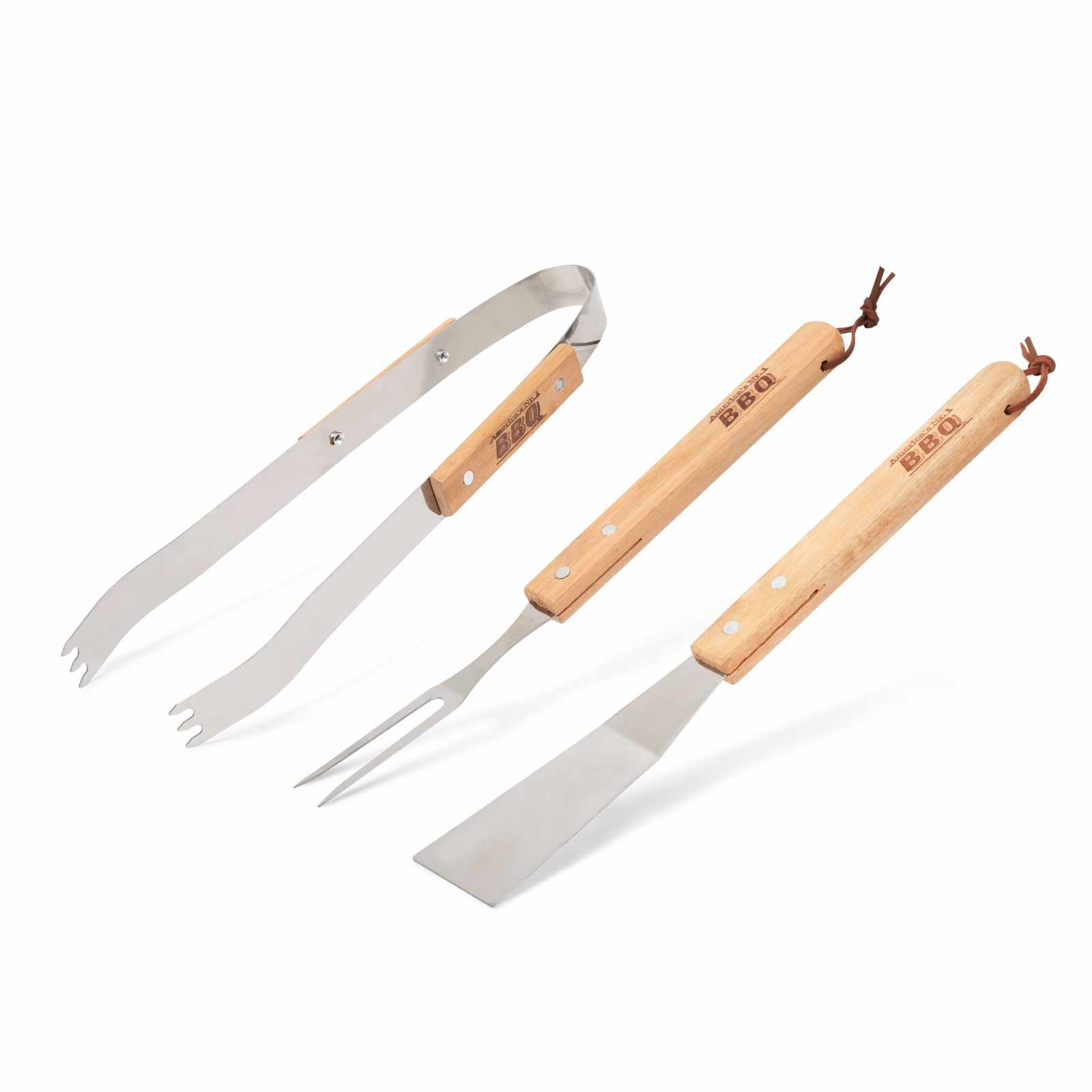 Grillező eszköz szett – 3 db-os – fa nyéllel BBQ 56304