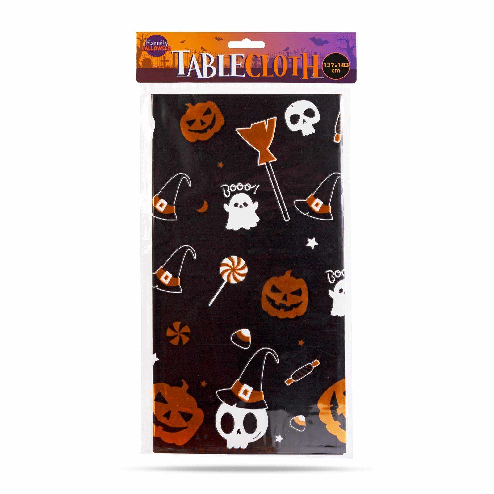Halloween-i asztalterítő – alumínium hatású – 137 x 183 cm – apró motívumos Family 56542E