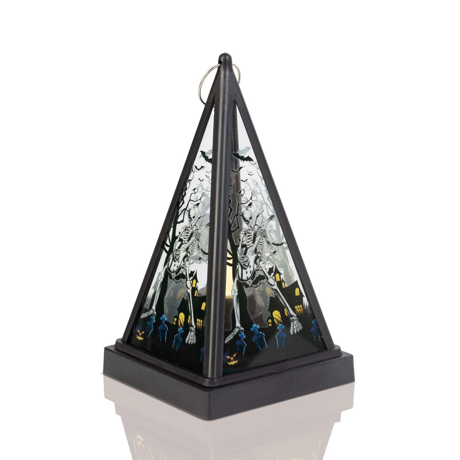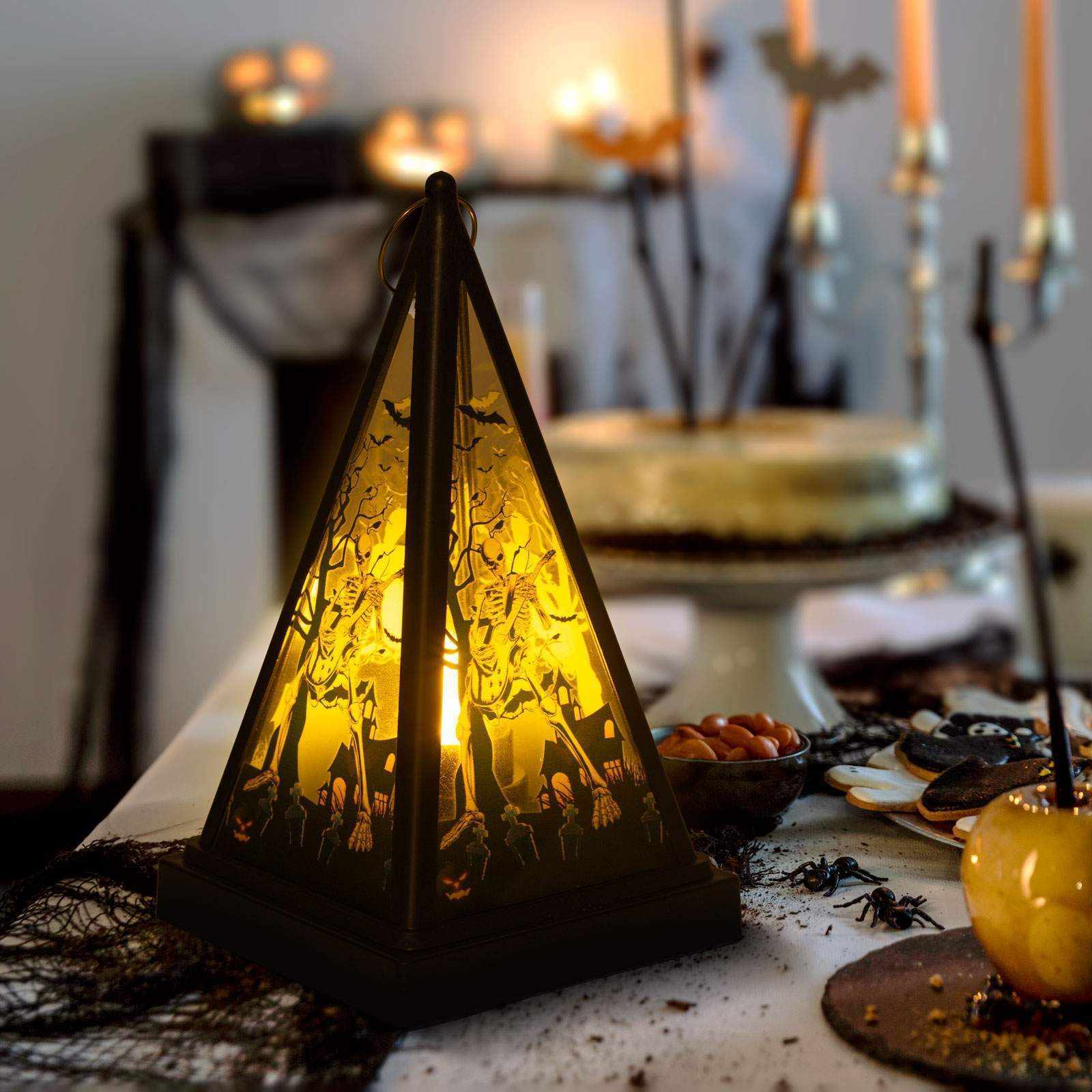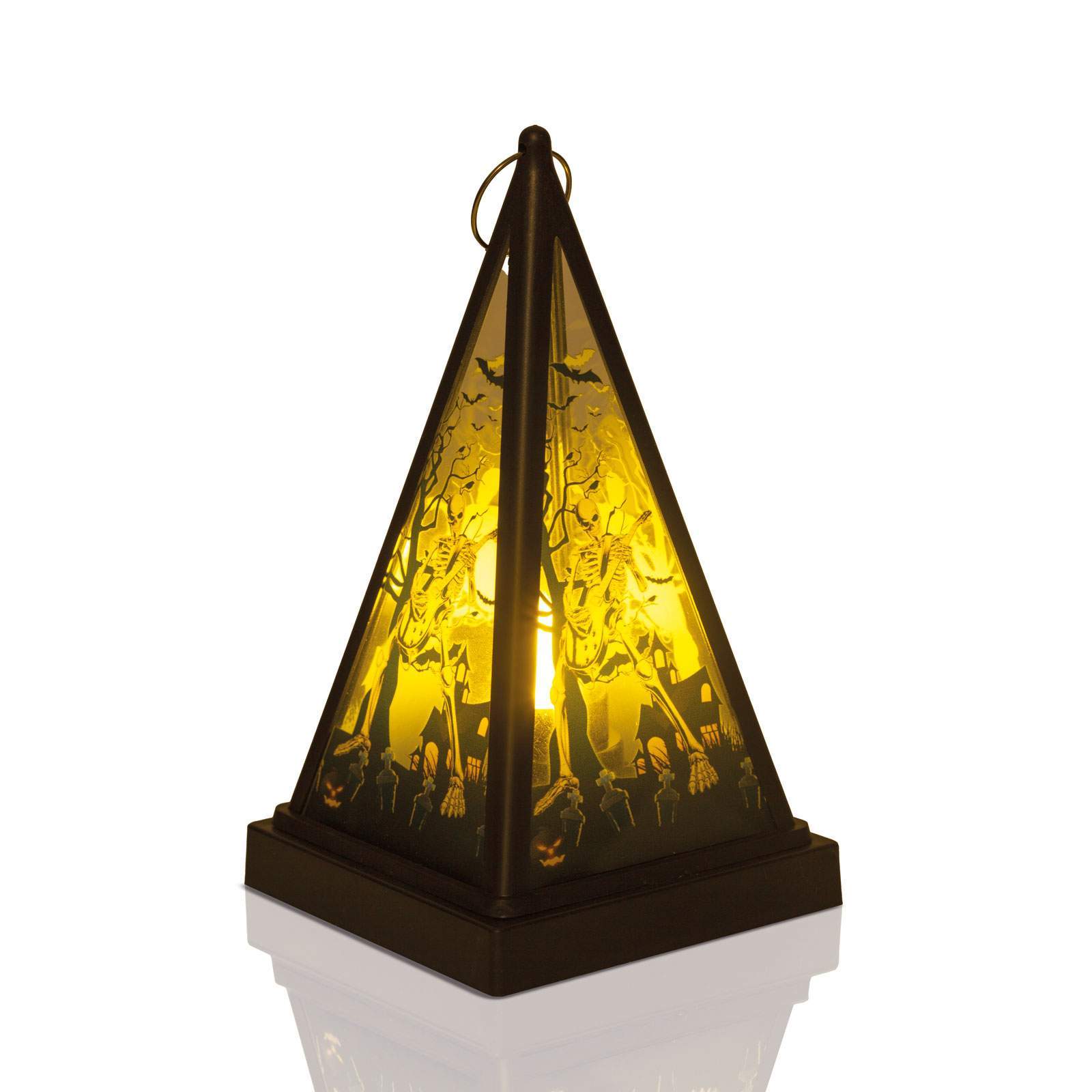 Hordozható Halloween-i LED lámpa melegfehér fényű teamécsessel! Az alján lévő kapcsoló segítségével kapcsolható be vagy ki. A töklámpásban lévő melegfehér LED kiválóan megvilágítja a lámpatestet, megvilágítva a lámpás oldalán található mintákat, ezáltal teremtve halloween-i hangulatot.