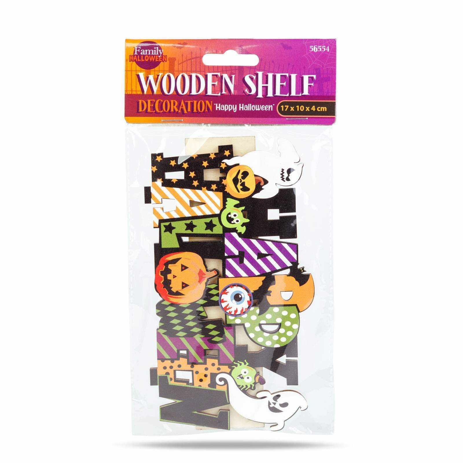 Halloween-i polc dekoráció fából – „Happy Halloween” – 17 x 10 x 4 cm Family 56554