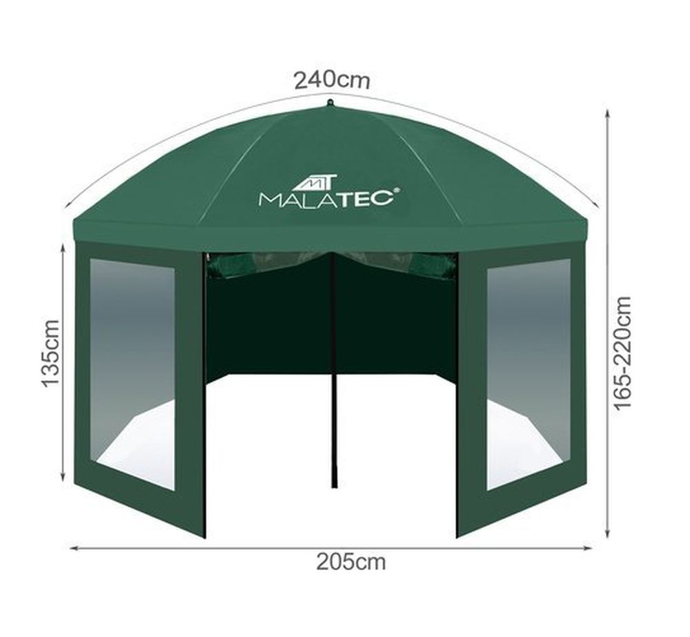 Ez az ernyő oldalakkal rendelkezik, hogy megtudjon védeni a széltől, esőtől, naptól téged és a felszerelésedet is horgászat közben. Anyaga UV szűrővel rendelkezik, amely visszaveri a napsugarakat. Az ernyő teleszkópos rúddal van felszerelve, amelynek köszönhetően függőleges és vízszintes helyzetben is stabilan fog állni. A rúd törésének köszönhetően bármilyen szögbe beállíthatod. Az ernyő két ablakkal, és egy cipzárral zárható ajtóval rendelkezik.