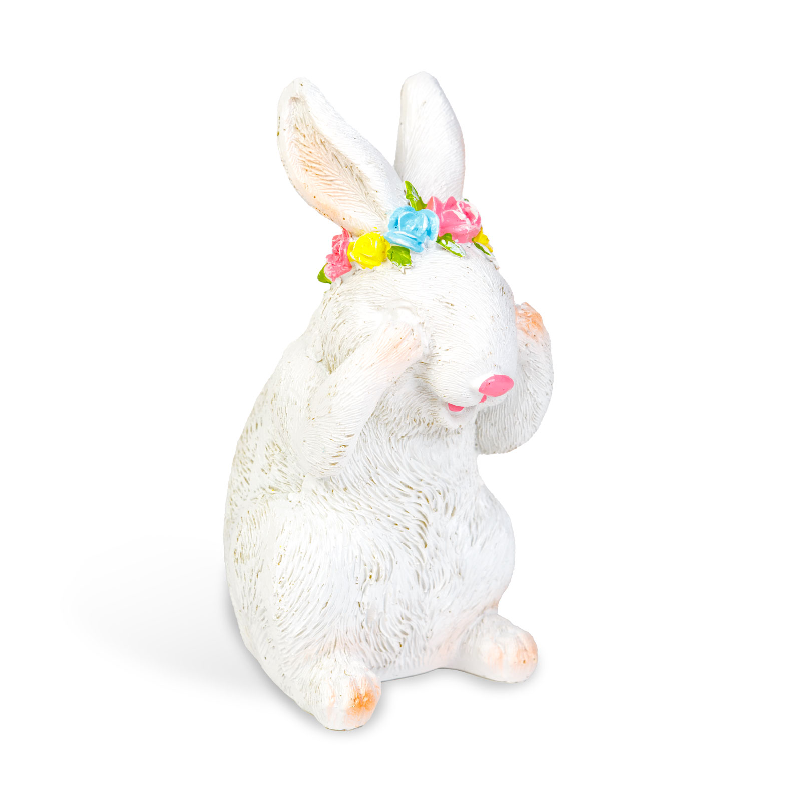 Varázsoljon tavaszi hangulatot otthonába ezzel a bájos húsvéti nyuszidekorációval! A kétféle változatban kapható nyuszik részletgazdag kidolgozásukkal és kedves megjelenésükkel remek kiegészítői lehetnek ünnepi asztaldíszeknek, polcoknak vagy ajándékcsomagoknak. Az egyik nyuszi virágokkal díszített koszorút visel, míg a másik egy szép virágszálat tart a kezében.