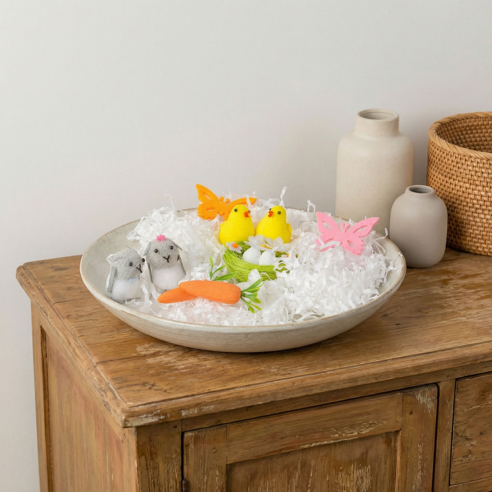 Teremtsen vidám, ünnepi hangulatot otthonában ezzel a bájos húsvéti dekorációs szettel! A szett különféle aranyos kiegészítőket tartalmaz, mint például nyuszik, csibék, répák, pillangók és virágdíszek, melyek tökéletesek kosarak, terítékek vagy kompozíciók díszítéséhez, összeállításához. A színes, részletgazdag elemek játékossá és hangulatossá varázsolják a lakást a tavaszi és húsvéti időszakban.