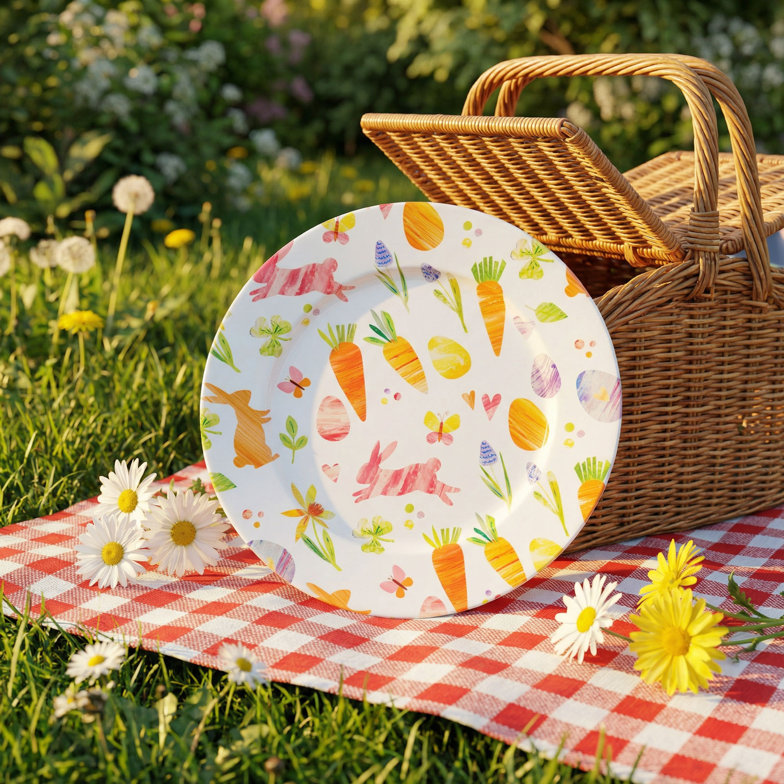 Varázsoljon vidám, tavaszi hangulatot asztalára ezzel a húsvéti mintás fém tányérral! A tányéron répák, nyuszik és színes húsvéti motívumok díszelegnek, melyek különleges dekorációvá és ünnepi tálalóeszközzé varázsolják. Strapabíró fémből készült, így hosszú ideig használható kompozíciókhoz, terítékekhez vagy akár önálló asztaldíszként is. Ideális választás húsvéti vendégváráshoz, ajándékozáshoz vagy a tavaszi dekoráció kiegészítésére.