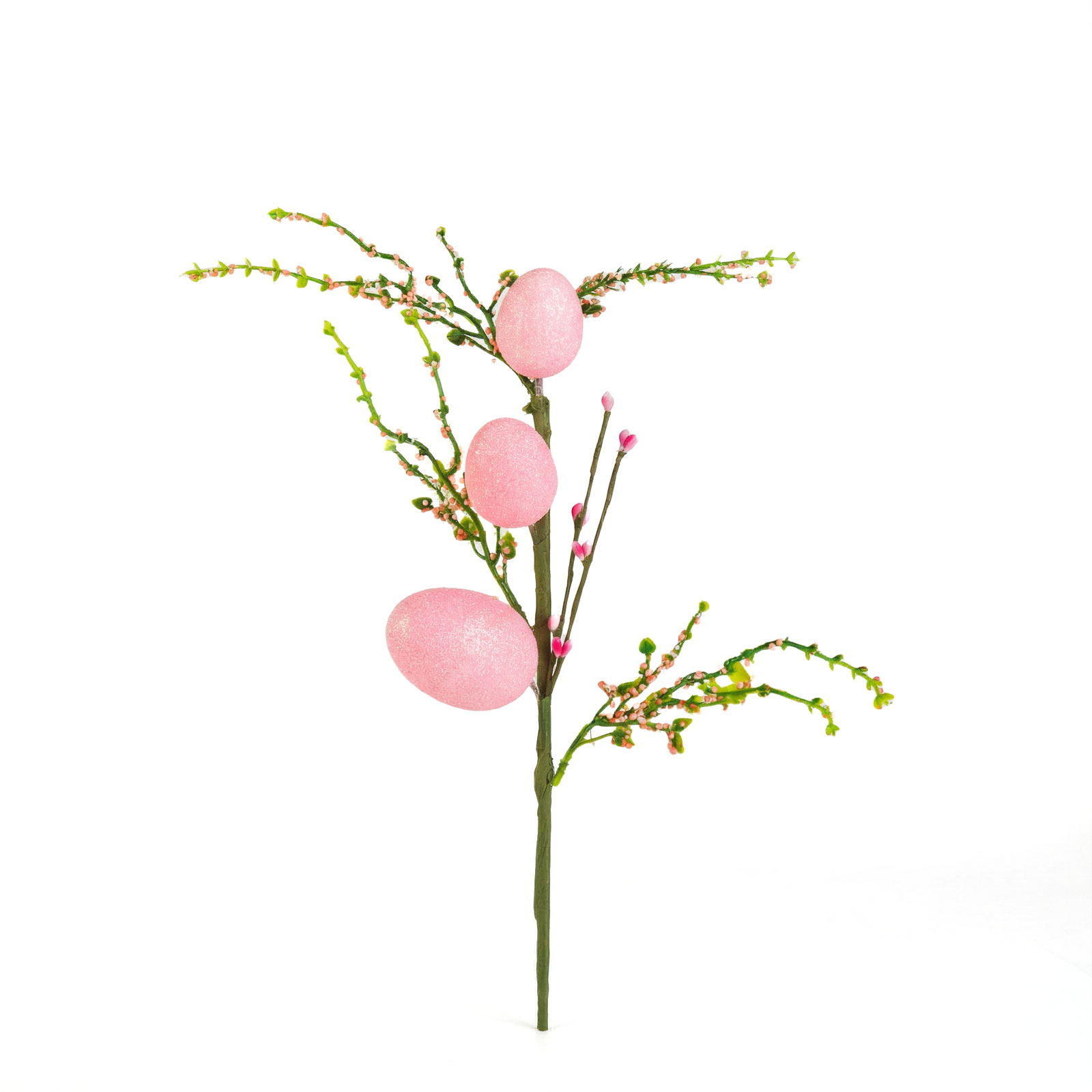 Dobja fel húsvéti dekorációját ezzel a csillogó tojásfa ággal! Az ág vidám, színes tojásokkal díszített, amelyek csillámos bevonatuknak köszönhetően különleges fényt adnak a kompozícióknak. Kétféle színben kapható, így könnyen kombinálható más ünnepi dekorációkkal. Ideális választás vázákba, kosarakba, asztali díszekbe vagy akár húsvéti tojásfákhoz.