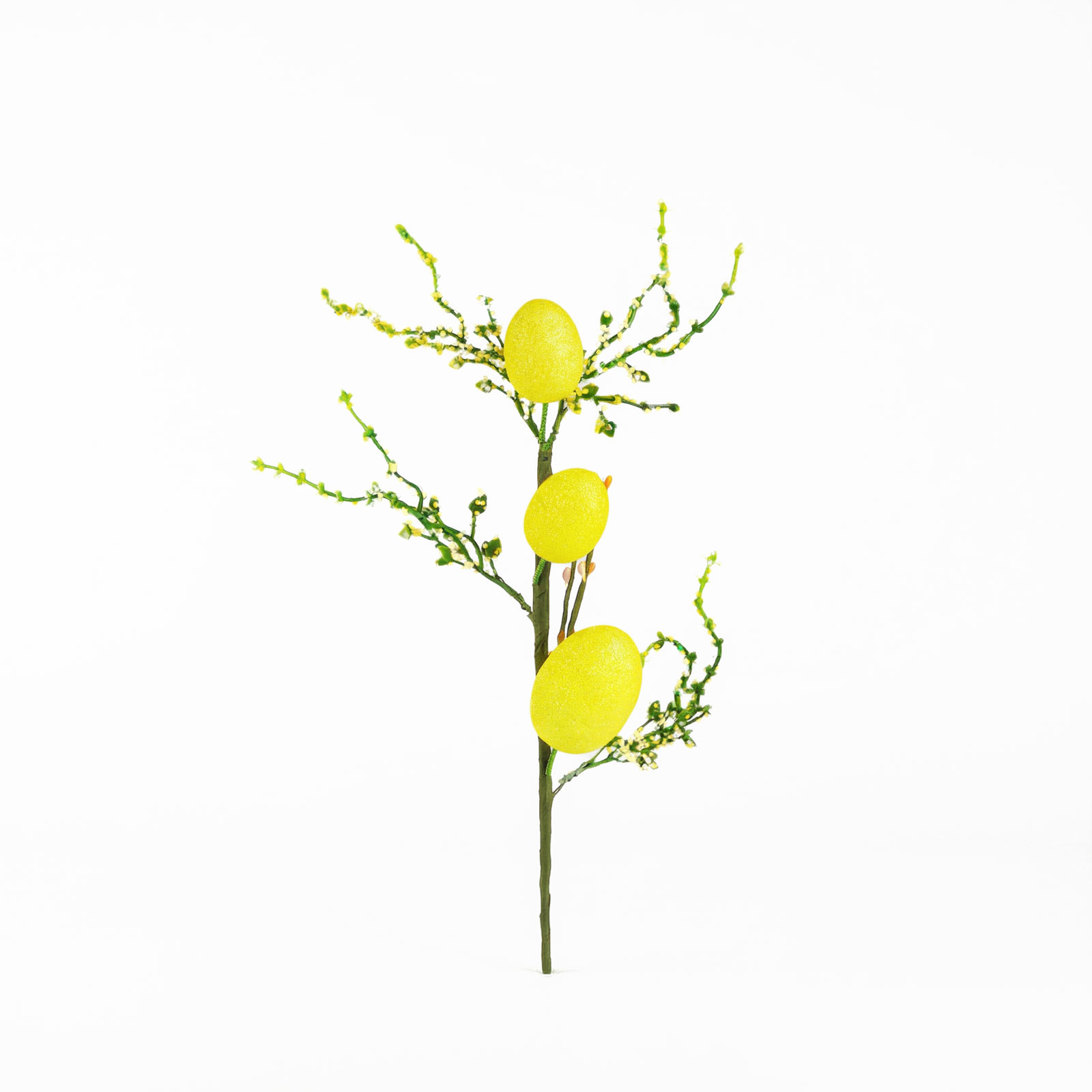 Húsvéti tojásfa ág – csillámos – sárga – 40 x 16 cm 57965A