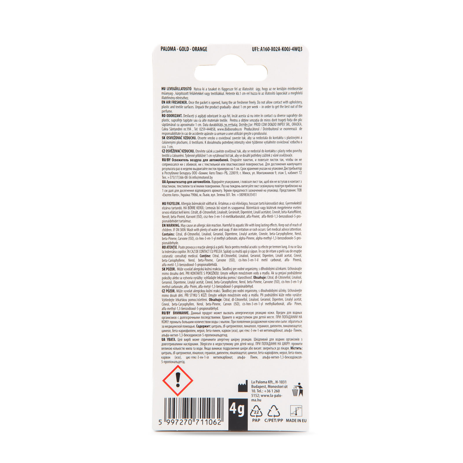 Frissítse fel autója levegőjét Paloma Gold illatosítóval és élvezze a kellemes utazást minden kilométeren!
