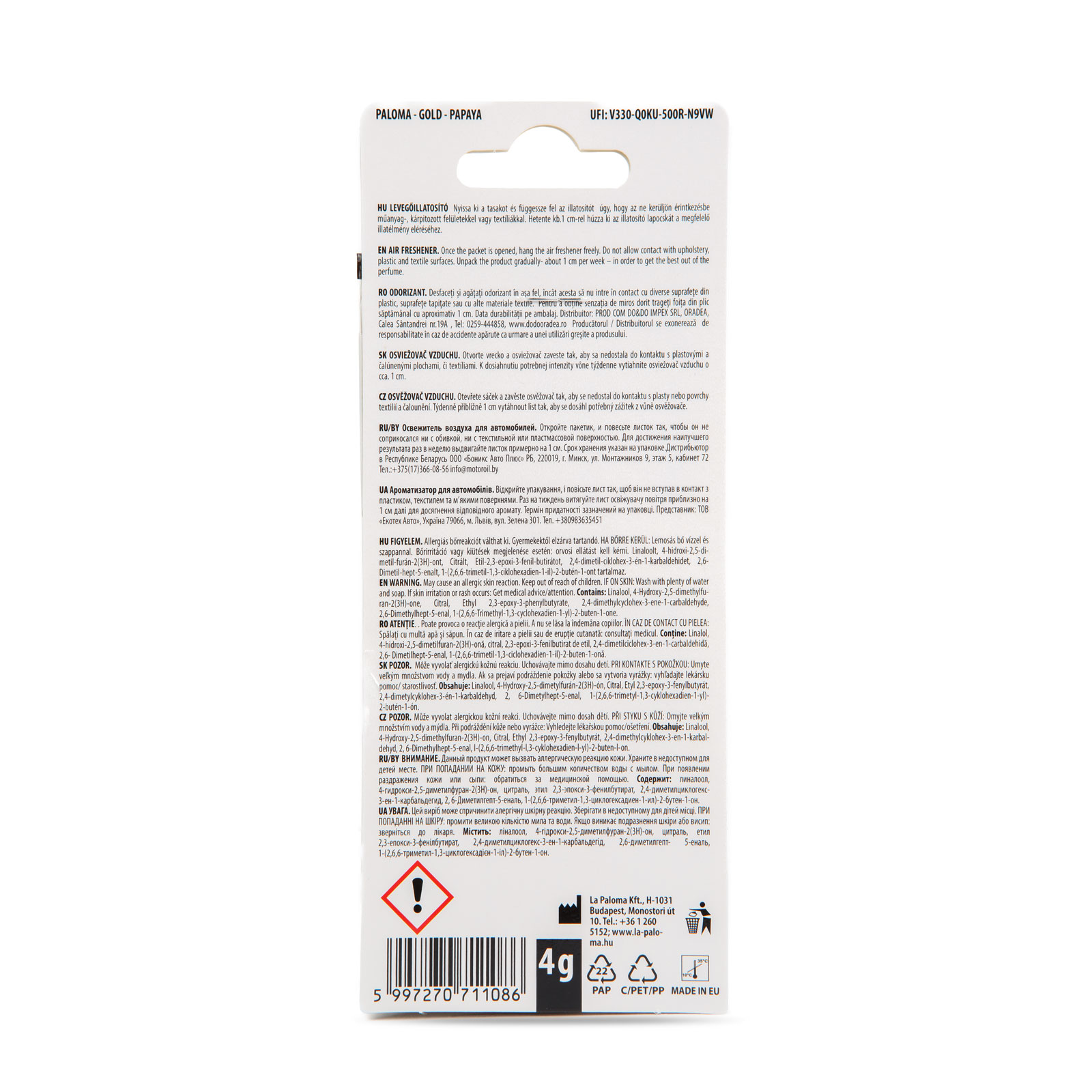 Frissítse fel autója levegőjét Paloma Gold illatosítóval és élvezze a kellemes utazást minden kilométeren!