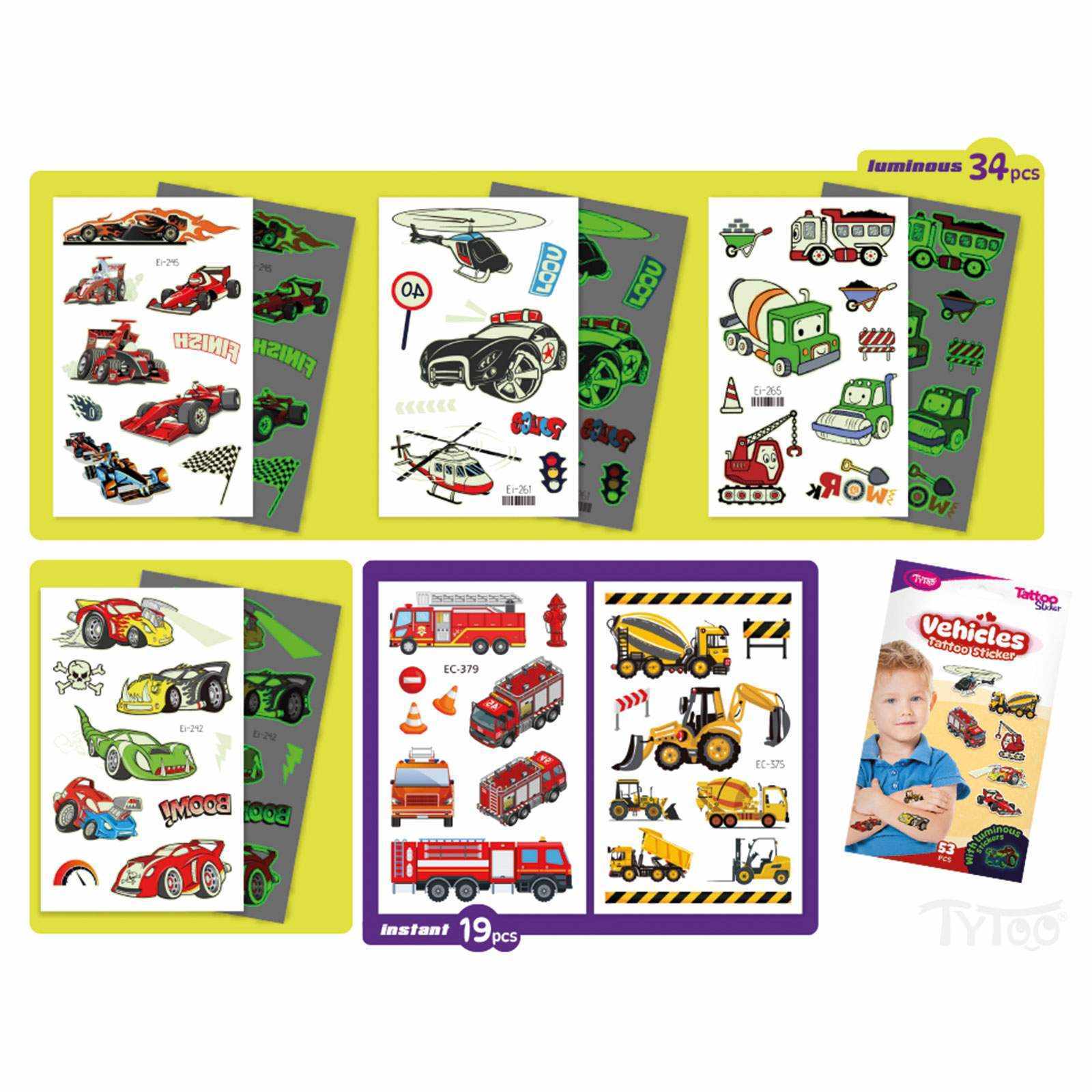 Minden ami autó! Könnyen felvihető, egyszerű és látványos tetkók, járműves mintákkal, szettben. Az igazi járgány fanatikus gyerekeknek. Ezek az ideiglenes tetoválás matricák kiváló minőségűek, így hosszabb ideig, napokig is megőrzik élénk színüket és részletgazdagságukat. Könnyen felhelyezhetőek és eltávolíthatóak, anélkül hogy irritálnák vagy károsítanák a bőrt. 53 db Járműves matrica tetoválás 6 db íven sport autók, világítós autók, munkagépek, tűzoltók, rendőrautók. Minden, ami jármű!