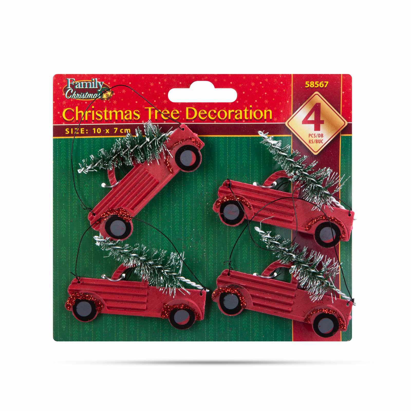Karácsonyfa dísz – akasztható kisautó – 10 x 7 cm – 4 db / csomag Family 58567
