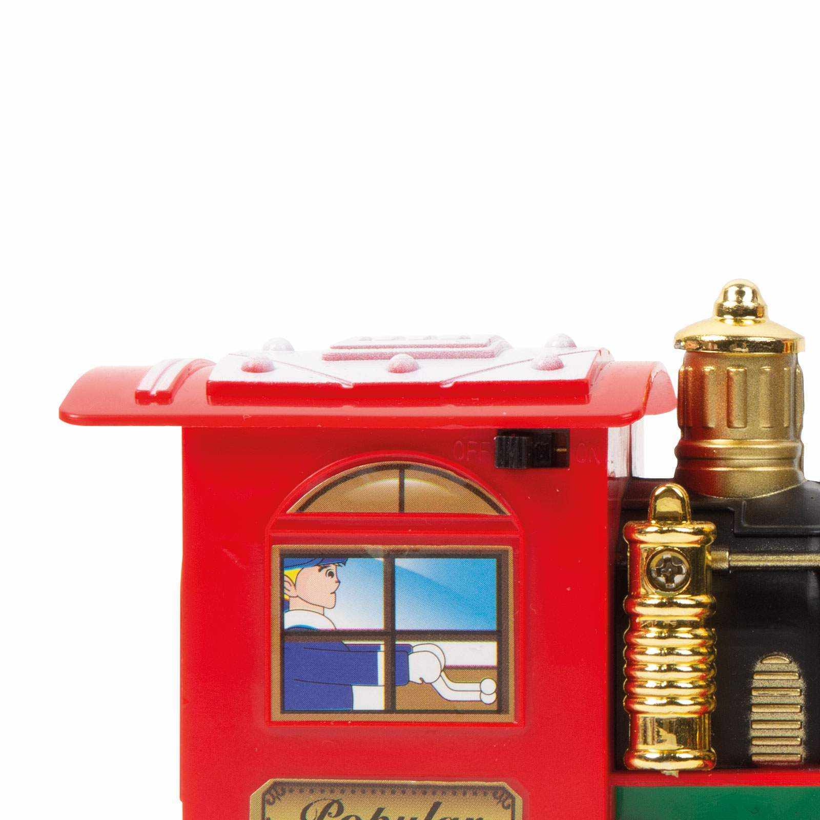 Tegye egyedivé és különlegessé karácsonyfáját ezzel a műfenyőre szerelhető kisvasúttal. A vonatsíneket szorítós tartószerkezettel rögzítheti bármilyen rúdra, fatörzsre, műfenyőre. A mozdony világít, zakatol, varázslatos élményt nyújt az egész családnak, ahogy eltűnik a fenyőfa díszei között a vagonokat és a Mikulás szánját húzva. Az összeszerelés nem igényel szakértelmet, pár perc alatt összerakható, a 4 db ceruzaelem hosszantartó működést biztosít. A rögzítő szerkezet felszerelése nélkül akár a karácsonyfatalp körül is használható.