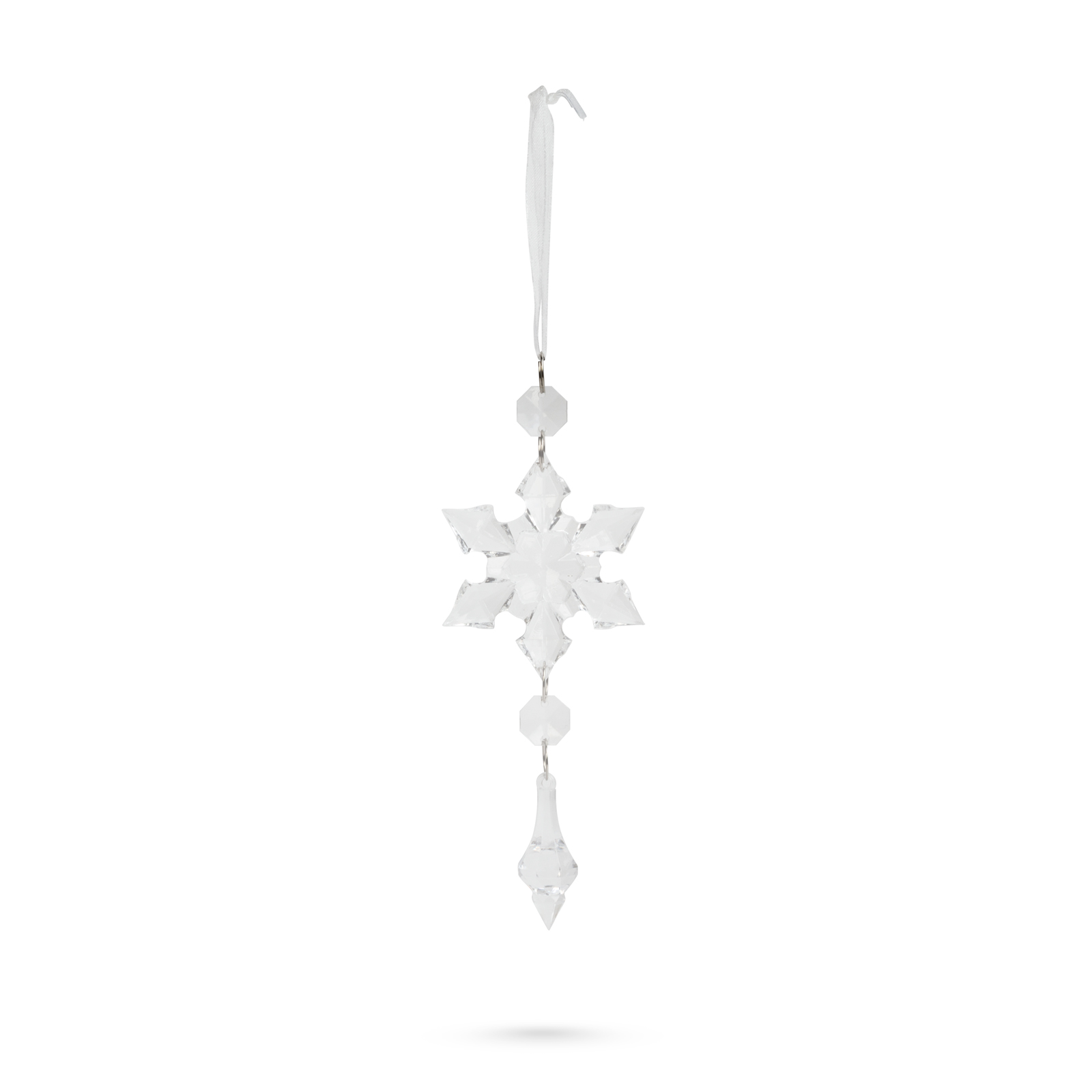 Klasszikus karácsonyi hópehely dísz, amely bármelyik karácsonyfa ékes dísze lehet. Az áttetsző felületen megcsillanó fények meghitt hangulatot teremtenek és ragyogással töltik be a karácsonyfát.