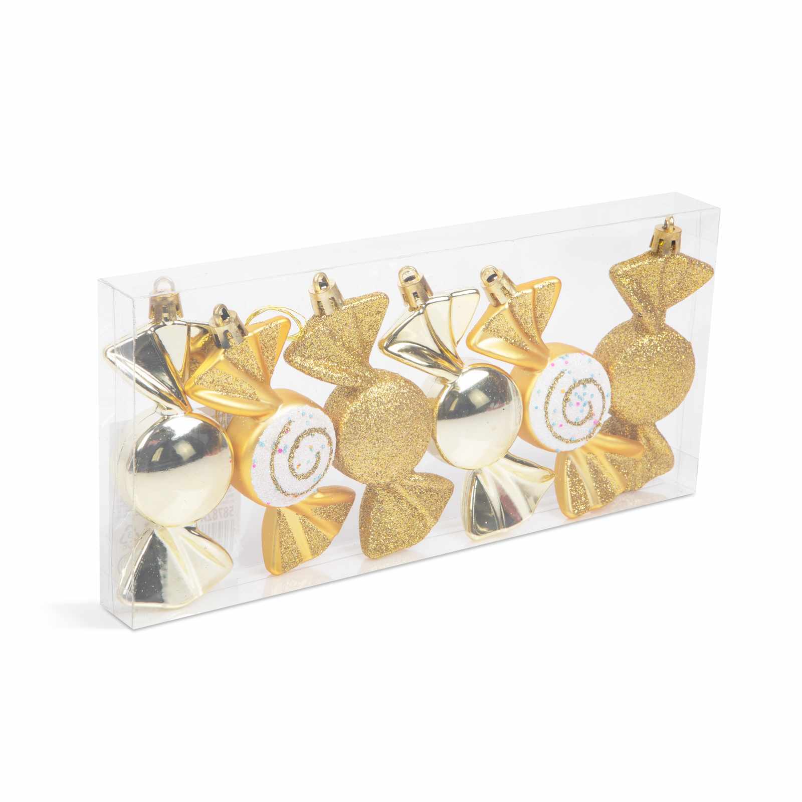 Ez az arany színű, cukorka formájú karácsonyfadísz kiválóan illik a karácsonyi dekorációhoz. A csillogó felülete visszaveri a környezeti fényeket, így lenyűgöző látványt nyújt. A tartós műanyagból készült dísz sok évig ékesítheti karácsonyfáját. Fenyőfa, girlandok, asztali díszek dekorálásánál elengedhetetlen kiegészítő lehet, amely varázslatos, ünnepi hangulatot teremt.