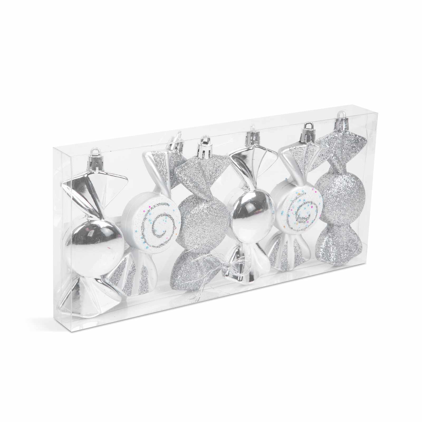 Ez az ezüst színű, cukorka formájú karácsonyfadísz kiválóan illik a karácsonyi dekorációhoz. A csillogó felülete visszaveri a környezeti fényeket, így lenyűgöző látványt nyújt. A tartós műanyagból készült dísz sok évig ékesítheti karácsonyfáját. Fenyőfa, girlandok, asztali díszek dekorálásánál elengedhetetlen kiegészítő lehet, amely varázslatos, ünnepi hangulatot teremt.