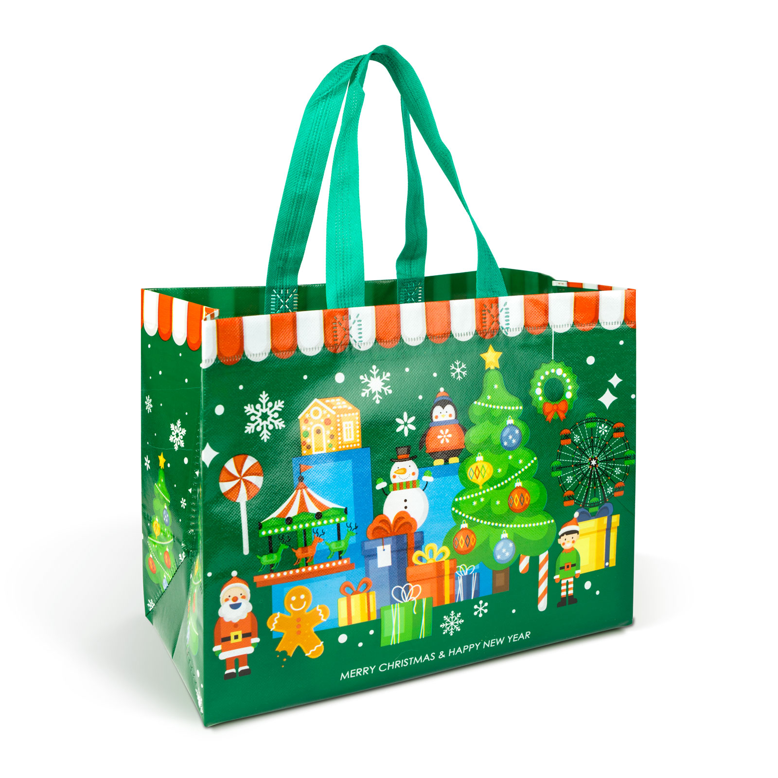 Ha szeretne igazán ütős és stílusos ajándékot adni barátainak és családjának karácsonykor, akkor ez a karácsonyi ajándéktáska tökéletes választás lehet átnyújtására! A vidám designnal ellátott, nem szőtt anyagból készült táska, 4 féle karácsonyi motívummal díszített. Strapabíró anyagból készült, mérete miatt ideális ajándékok és édességek tárolására, átadására. Nagyméretű fülének köszönhetően könnyű és kényelmes hordozhatóságot biztosít.