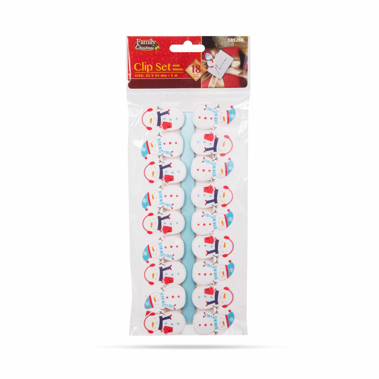 Karácsonyi csipesz szalaggal – hóember – 22 x 35 mm – 18 db, 2 m / csomag Family 58526B
