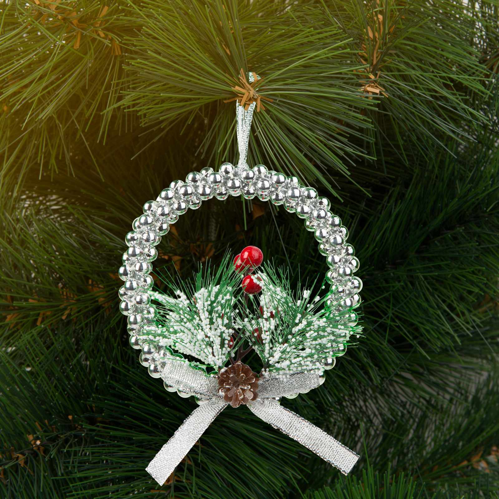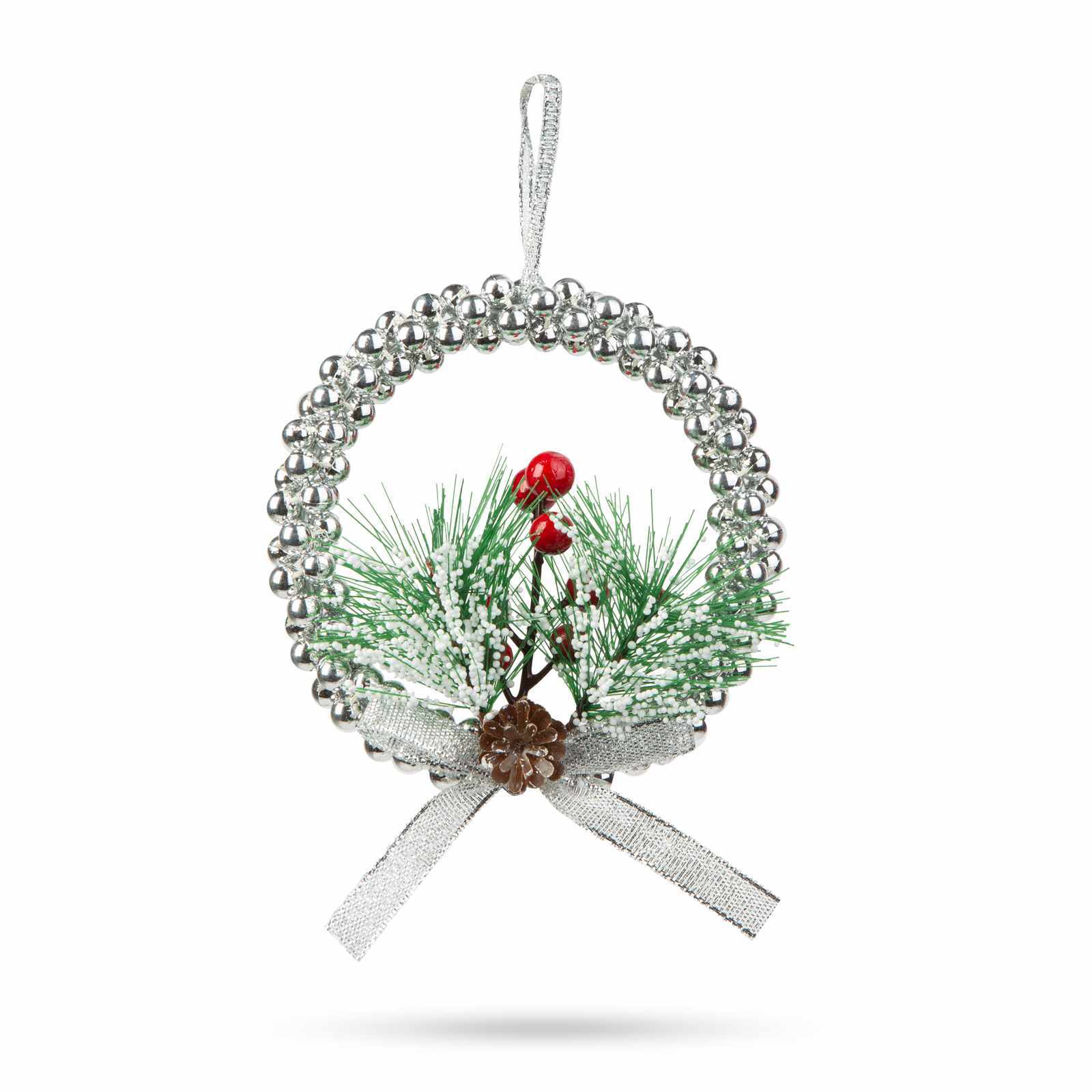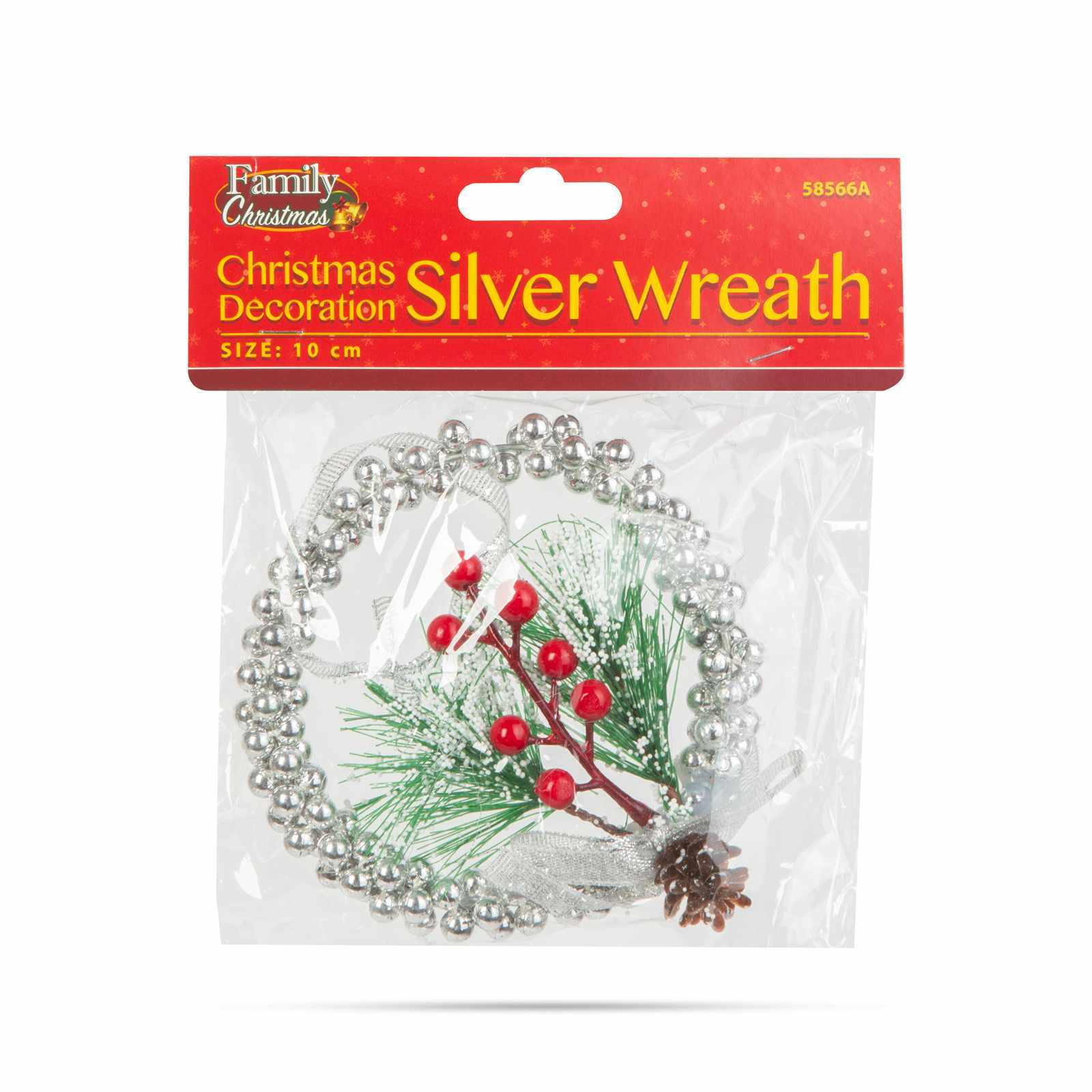 Karácsonyi dekoráció – akasztható – ezüst koszorú – 10 cm Family 58566A