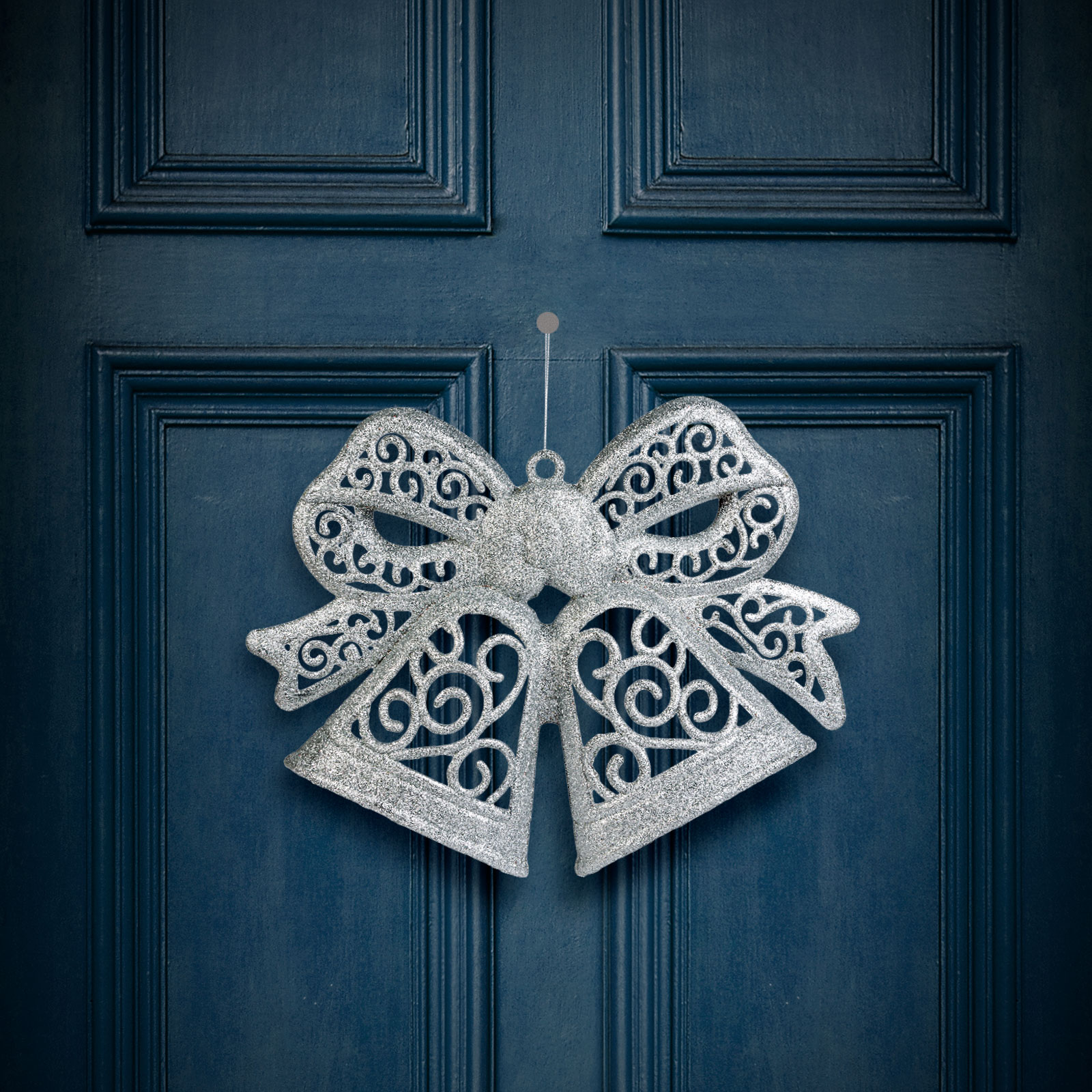 Dobja fel otthona ünnepi dekorációját ezzel a csillogó masni dekorációval! Nagy méretének és varázslatos formájának köszönhetően kiváló választás karácsonyfák, bejárati ajtók, nagyobb terek díszítésére. A finoman kidolgozott részletek és glitteres bevonat különleges ragyogást kölcsönöznek, amely az ünnepi fényekben még csodálatosabb hatást kelt. Akasztójával gyorsan és egyszerűen rögzítheti.