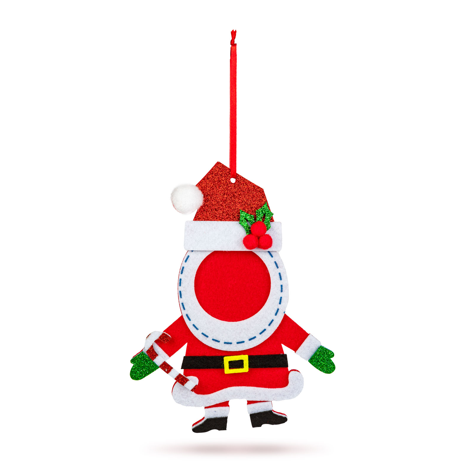 Dobja fel otthonát ezzel a vidám, filcből készült fényképtartó dísszel! A háromféle – mézeskalács figura, Mikulás és pingvin – változatban érhető el. Kedves megjelenésével és a csilingelő csengettyűvel ünnepi hangulatot teremt bármely helyiségben. A cukorbottal díszített dekorációt akasztójának köszönhetően könnyen rögzítheti, ideális ajtókra, ablakokra, karácsonyfára vagy akár ajándékcsomagra is. Könnyű, puha anyagból készült, így gyermekekkel közösen is biztonságosan dekorálhatunk vele.