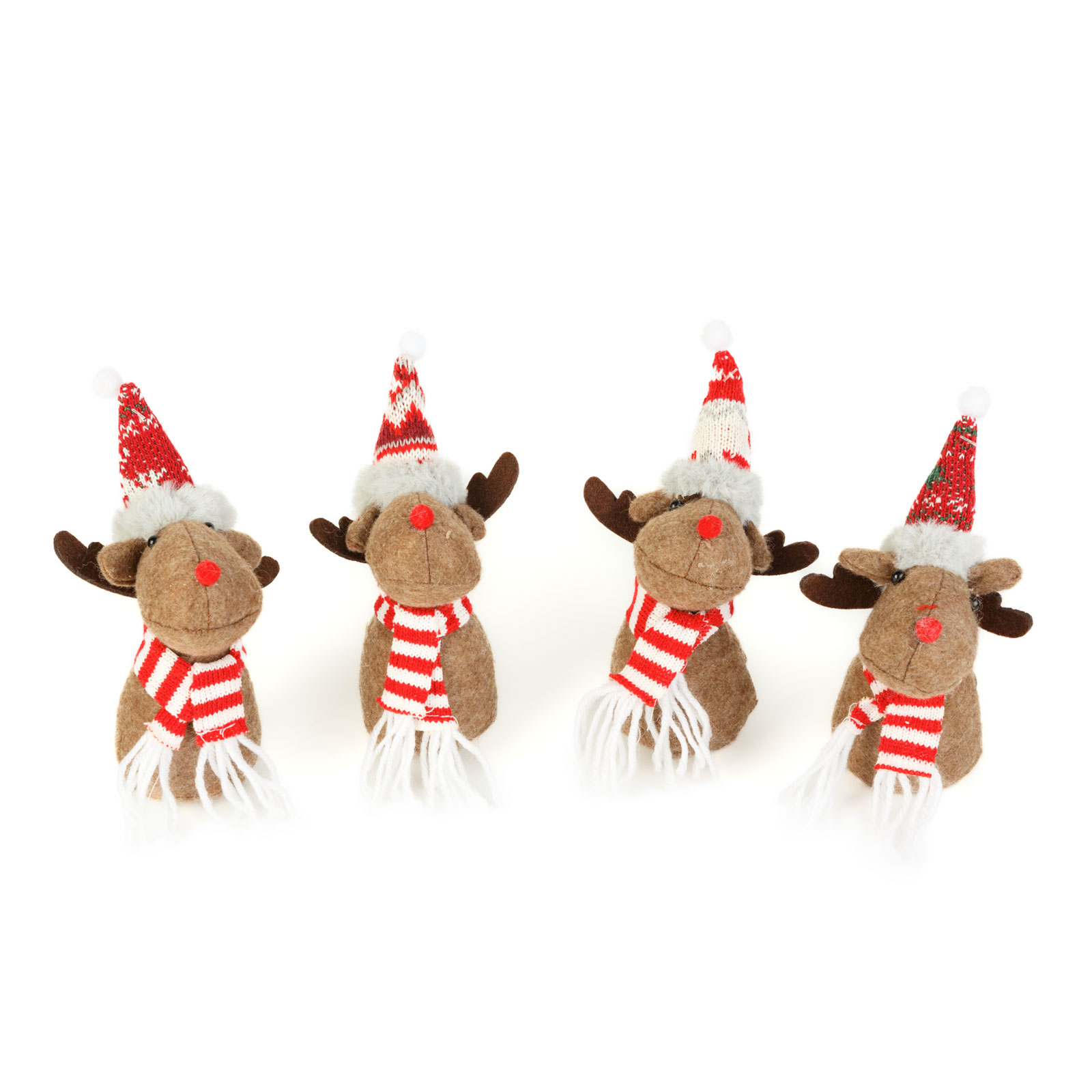 Varázsoljon ünnepi hangulatot otthonába ezekkel a bájos rénszarvas figurákkal! A 18 cm magas dekorációs figurák, jól mutatnak íróasztalon, polcon asztalon, vidámságot csempészve mindennapjaiba. Piros-fehér mintázatú sapkáikkal tökéletesen illeszkednek az ünnepi enteriőrbe.