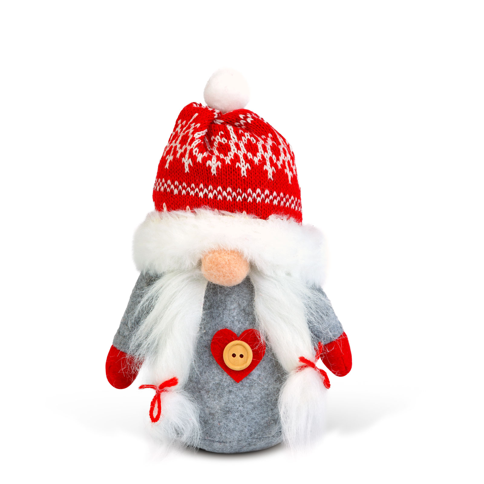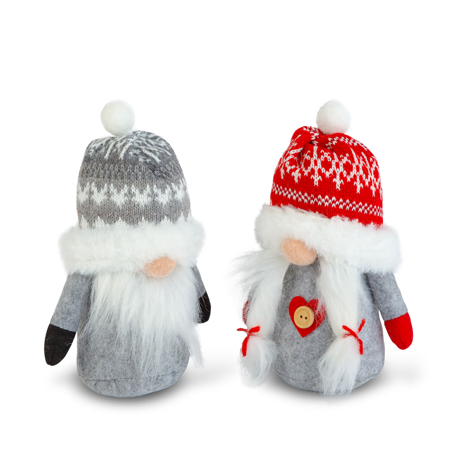 Varázsoljon ünnepi hangulatot otthonába ezekkel a bájos karácsonyi manókkal! A 20 cm magas dekorációs figurák, puha, bolyhos szakállal, hajjal és piros-szürke sapkáikkal tökéletesen illeszkednek az ünnepi enteriőrbe.