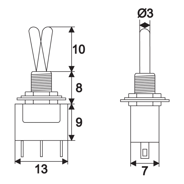 Karos kapcsoló, 3A terhelésig, ideális üzemi gépekbe, elektromos eszközökbe. A fém kivitelnek köszönhetően, tartós, strapabíró kivitel.