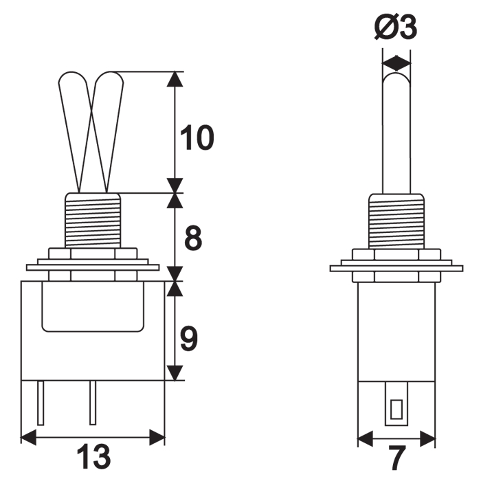 Kapcsolókar hossza: 10 mm