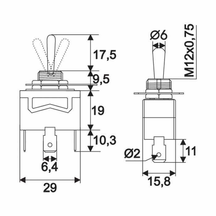 Karos kapcsoló, fém kivitel, kiválóan alkalmas műszaki gépek, berendezésekbe történő beépítésre. Maximum 10 A-ig terhelhető, fém előlappal rendelkezik. Strapabíró kivitel.
