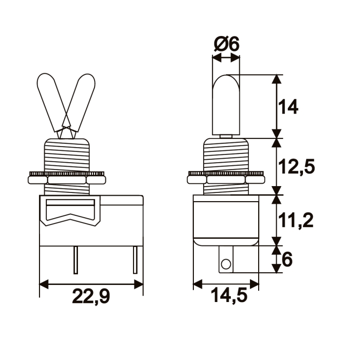 Kapcsolókar hosszúság: 14 mm